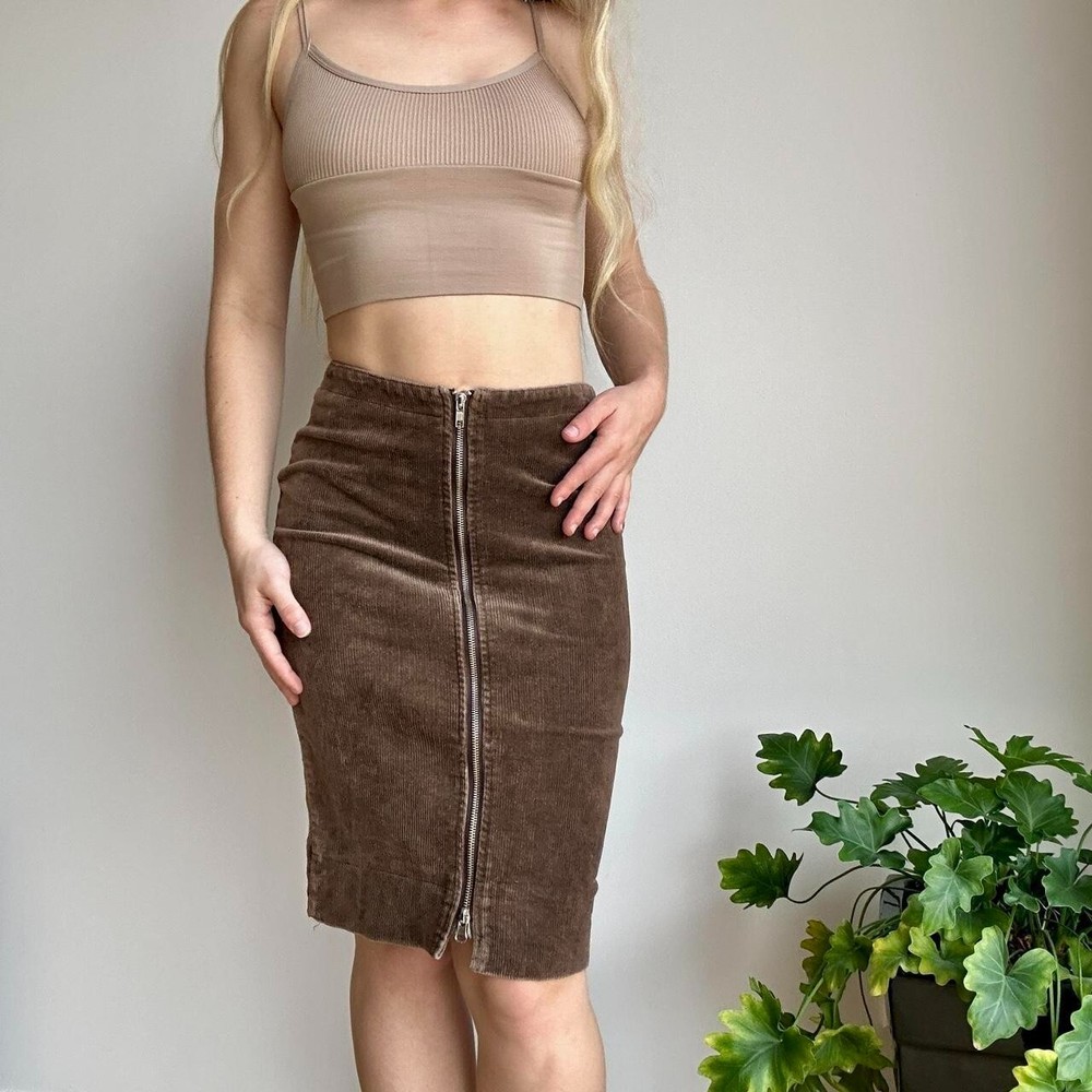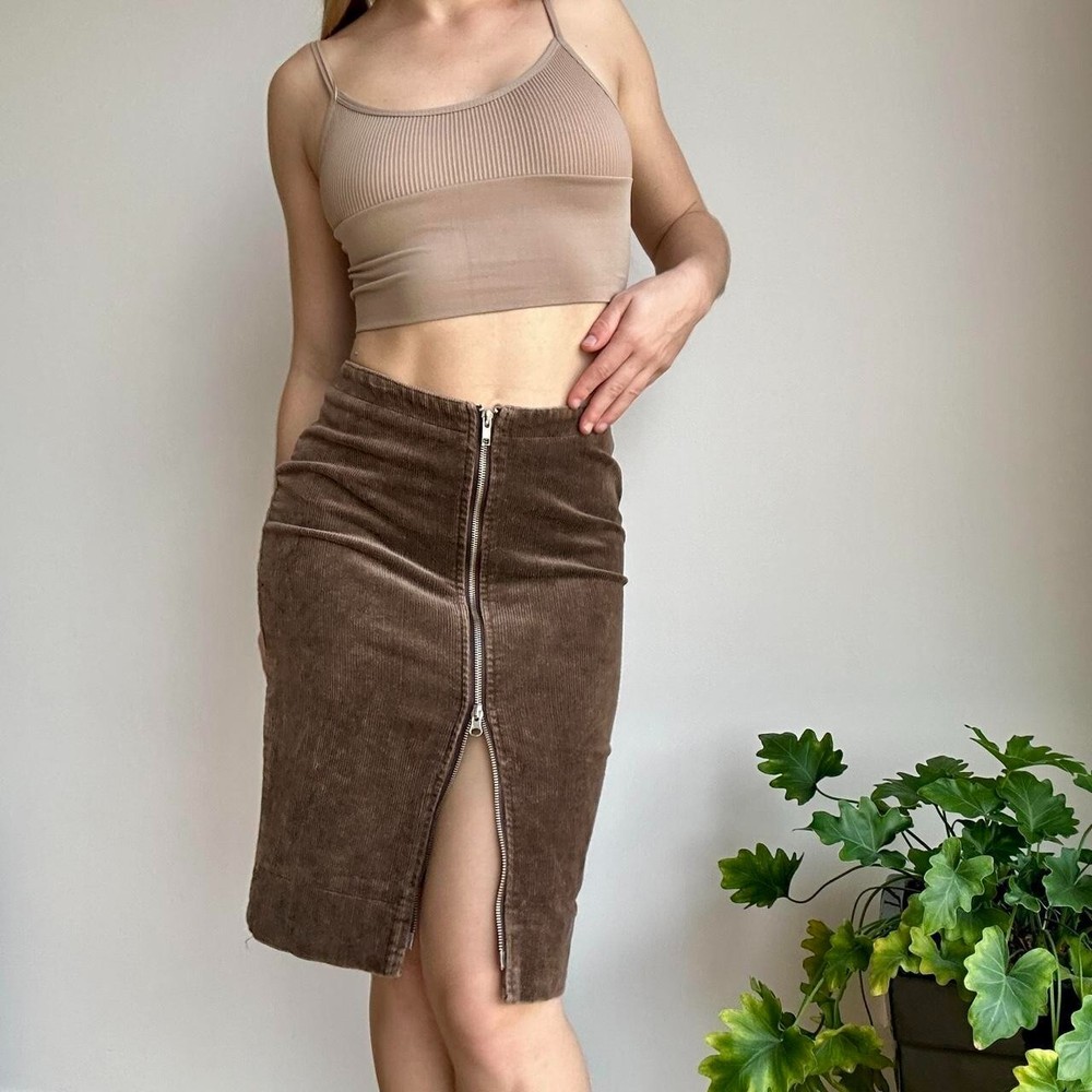 $ 99.51525 AMERICA Snap Ribbed Knit Midi Skirt Orange Size M