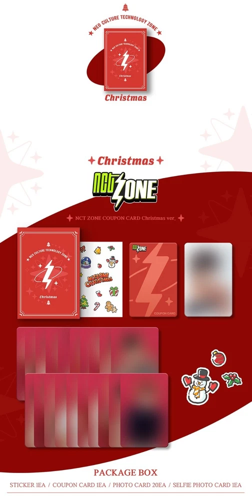 NCT - NCT ZONE COUPON CARD (CHRISTMAS ver.) ※ Orders received from the launch date on December 21th, 2023 will be shipped sequentially. ※ This product is not a CD album. ■ Product Description Only in NCT ZONE! Photos & videos of various concepts Enjoy photos and videos of various concepts that can be found only in NCT ZONE! The package consists of exclusive images shot for NCT ZONE. The coupon card includes 300 Crystals + 25,000 Gold worth 15,000 won that can be used in NCT ZONE. ■ Product Specification · PACKAGE SIZE: 90mm x 60mm x 12mm · PACKAGE WEIGHT: 45g · COUPON CARD: 55 x 85mm / Paper / 1EA · PHOTO CARD : 55 x 85mm / Paper / 20EA · SELFIE PHOTO CARD : 55 x 85mm / Paper / RANDOM 1EA (1 OF 20) · STICKER PACK: 86 x 54mm / Paper / 1EA ■ NCT ZONE Description Album releases, concerts, photoshoots... Idol group NCT has a packed schedule every day. From NCT's small wishes to their deepest desires... All those wishes gather in NEOZONE, a city of dreams in KWANGYA, the amorphous and limitless world, and present themselves as [Dreams] with various stories while NCT is sleeping. NCT CCOMAZ and Agent NCT live in NEOZONE, the city of dreams. They were managing idol NCT's dreams in NEOZONE and kept the city peaceful... When one day, an unknown anomaly causes NEOZONE to explode! ■ Customer Notice * Damaged and opened products due to consumer negligence are not eligible for exchange or refund. * Fine scratches are not eligible for exchange or refund, and we will exchange the product in case of severe damage. If the product is out of stock and we cannot exchange it, we will give you a refund. Note: I Accept PayPal only Basically, I provide Free Economy Shipping (No Tracking Number) You can add $ 5 to use standard Shipping upon your request. You can add $ 20 to use Expedited Shipping upon your request. Item ships From korea, south, Shipping usually 2-3 weeks. ※ Shipping Notes ※ -Free Economy Shipping Because there is a risk of loss We recommend standard Shipping. -Depending on the country, shipping may take two to three months. Feel free to contact me if you have any questions. **Customs duty guidance tariffs are not included in the price of this product. If the price of the product exceeds the tax exemption limit of each country, You have to pay a separate tariff. Whether the price of the product you are viewing exceeds the duty-free limit Please check and order. (Each country has different duty-free standards, so ask the customs office of your country.) On the grounds that customs duties were levied when the goods were received We do not offer refunds or returns.