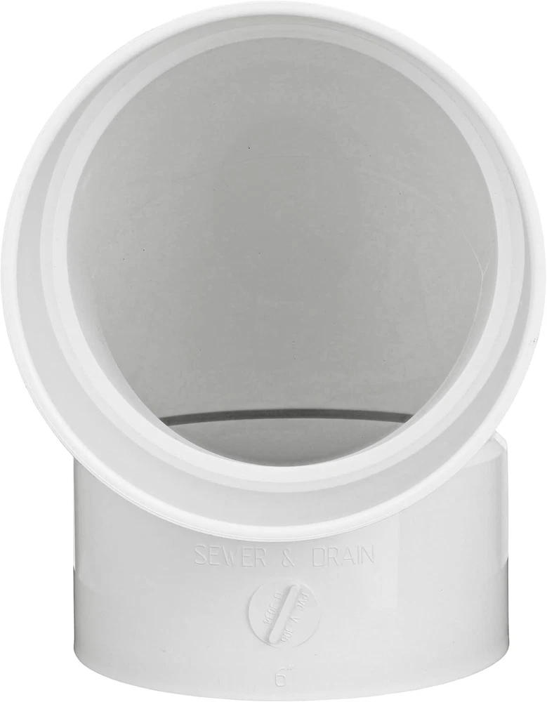 About this item ADDS A 90-DEGREE TURN: As part of a complete drainage system, the PVC elbow adds a 90° turn to the pipeline as it connects two pipes of the same type and diameter size together; it can also add a 90° turn from drainage product to drain pipe MAKES SEWER & DRAIN PIPE CONNECTIONS: Adds a 90° turn from 6 in. Sewer & Drain (S&D) pipe to 6 in. S&D pipe in non-pressurized drainage and sewer piping systems CONNECTS DRAINAGE SYSTEM COMPONENTS: Adds a 90° turn from select drainage products such as drainage grates and pop-up emitters to 6 in. S&D pipe SOLVENT-WELD FOR A WATERTIGHT CONNECTION: Made of polyvinyl chloride (PVC) for Hub X Hub solvent-weld connections SPECIFICATIONS: Works with Sewer and Drain pipe per ASTM D 2729, D 3034, D 2751 and F 810; Not compatible with DWV Schedule 40 pipe and fittings per ASTM D 2665 Size 1 Count (Pack of 1) Material PVC Brand NDS Color White Item dimensions L x W x H 9.48 x 9.48 x 6.6 inches Connector Type Elbow Exterior Finish Painted Item Weight 0.5 Pounds Number of Pieces 1 Global Trade Identification Number