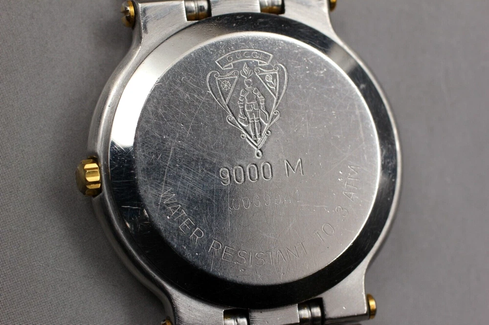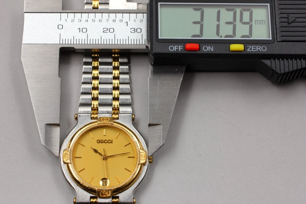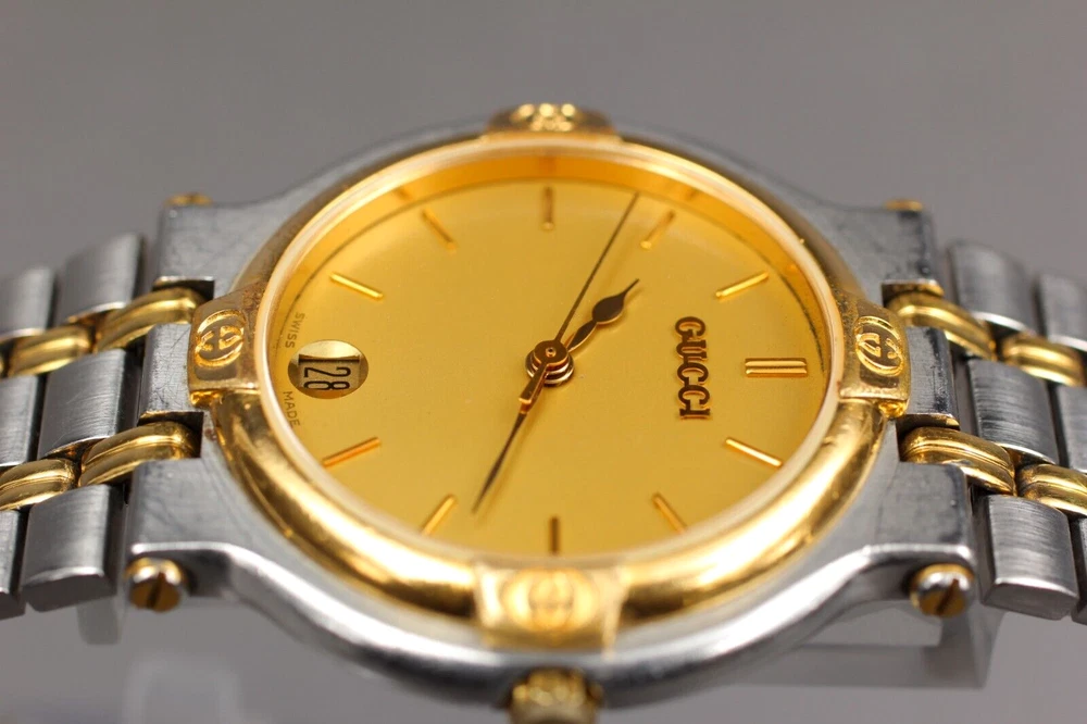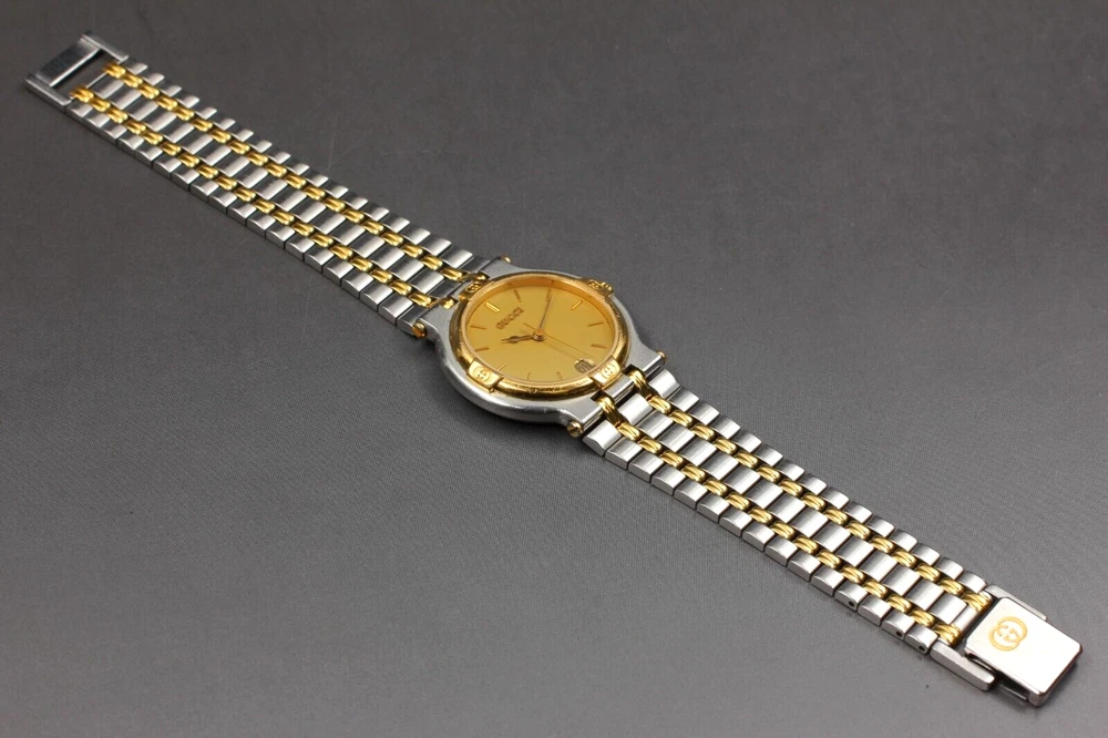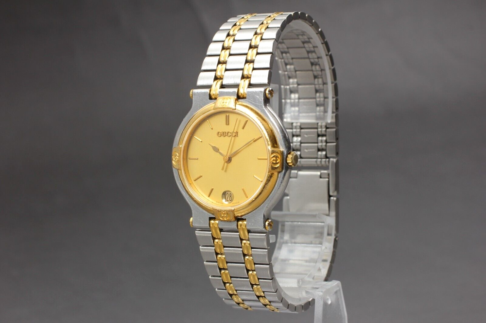 【NEAR MINT】 Gucci 9000M Gold Dial Silver Quartz Men's Vintage Watch From JAPAN W2312-39 Description ■ Total Condition TOP MINT Pre-owned, Almost new item MINT Pre-owned, Like new NEAR MINT Pre-owned, almost no signs of use EXCELLENT+5 Pre-owned, minimal signs of use EXCELLENT Pre-owned, heavy signs of use VERY GOOD poor appearance For Parts Repair is required. ■ Model Number 9000M ■ Serial Number 0069941 ■ Appearance Beautiful condition. Slightly scuffed but no scratches on the windshield. Tiny scuffs from normal use. It shows signs of use. *Please check photos. ■ Case Size About 1.23 in (31.39 mm) ■ Max Belt Size About 7.00 in (178 mm) ■ Functional It works properly. Quick set (Date) : work well. The watch is currently running smoothly, but since it is a battery-powered watch, there is a possibility that it will stop during transportation. Please understand that we do not guarantee that this will happen. Please contact me first for return before you ship it back to me. The postage of the returned goods is a buyer burden. ■ Bundled Items There are no bundled items. All you can see on the picture will be included in a set of a package. Items not pictured are not included. Please refer to the pictures for more details. Please check the pictures and don't hesitate to ask any questions about the item ! Thank you. Payment We accept Pay Pal or Visa , Master Card and Discover . Payment is due within 5 days of the auction end. We will ship the item 3 business days after your payment clears. Shipping I send a product by DHL or Japan Post (EMS) . I attach the tracking number. Please bid it without worrying. Shipping is only available to the address registered in Paypal. Please note that any address not registered in Paypal is not acceptable to ship. Shipping is available from Monday to Friday. Weekends are not available because post office is closed. Returns Unconditional Return Policy Customer service and satisfaction are very important to us. I have an unconditional return policy if notified within 30 of the receipt of the item. All returned items must be the original condition. All return requests must be made within 30 days of the receipt of the item. Please contact me first for return before you ship it back to me. The postage of the returned goods is a buyer burden. International Buyers Please Note: Import duties, taxes, and charges are not included in the item price or shipping cost. These charges are the buyer's responsibility. Please check with your country's customs office to determine what these additional costs will be prior to bidding or buying.