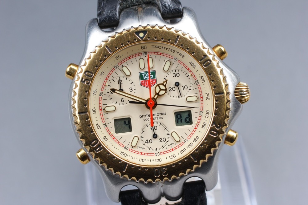 [NEAR MINT] TAG Heuer S/el CG1123-0 Senna Chronograph Gold 40mm Mens Watch JAPAN Description Following recent updates to eBay’s policies, import duties for items shipped to the United States are now included in the item price. Please note that, in our shop, the shipping fee is considered to cover the import duty portion. Therefore, customers in the United States will not be required to pay any additional customs duties at the time of delivery. ■ Condition Near Mint Pre-owned, almost no signs of use. ■ Model Number CG1123-0 ■ Serial Number 81907 ■ Appearance [Case] Beautiful condition . There are some light scratches on the stainless steel parts. There is some plating peeling off on the crown. There is no dent. [Belt] Beautiful condition . There is no scratches. The belt is a compatible item. ■ Belt Size Free Size ■ Functional It works properly. ■ Bundled Items All you can see on the picture will be included in a set of a package. Please refer to the pictures for more details. Please check the pictures and don't hesitate to ask any questions about the item ! Thank you. Payment We accept Pay Pal or Visa , Master Card , American Express and Discover . Payment is due within 5 days of the auction end. We will ship the item 3 business days after your payment clears. Shipping I send a product by Fed Ex or EMS or DHL I attach the tracking number. Please bid it without worrying. Shipping is only available to the address registered in Paypal. Please note that any address not registered in Paypal is not acceptable to ship. Shipping is available from Monday to Friday. Weekends are not available because post office is closed. Returns Unconditional Return Policy Customer service and satisfaction are very important to us. I have an unconditional return policy if notified within 30 of the receipt of the item. All returned items must be the original condition. All return requests must be made within 30 days of the receipt of the item. Please contact me first for return before you ship it back to me. The postage of the returned goods is a buyer burden. International Buyers Please Note: Import duties, taxes, and charges are not included in the item price or shipping cost. These charges are the buyer's responsibility. Please check with your country's customs office to determine what these additional costs will be prior to bidding or buying.