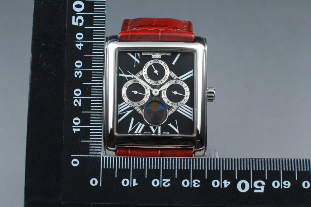 [NEAR MINT w/Box] FREDERIQUE CONSTANT FC265X3C24/6 Black Moonphase Qz Mens Watch Description Following recent updates to eBay’s policies, import duties for items shipped to the United States are now included in the item price. Please note that, in our shop, the shipping fee is considered to cover the import duty portion. Therefore, customers in the United States will not be required to pay any additional customs duties at the time of delivery. ■ Condition Near Mint Pre-owned, almost no signs of use. ■ Model Number FC265X3C24/6 ■ Serial Number 1575083 ■ Appearance [Case] Beautiful condition . There are some light scratches on the stainless steel part. There is no dent. [Belt] Beautiful condition . The belt has some signs of use. The belt is a compatible item. ■ Belt Size Free Size ■ Functional It works properly. ■ Bundled Items Box Manual warranty All you can see on the picture will be included in a set of a package. Please refer to the pictures for more details. Please check the pictures and don't hesitate to ask any questions about the item ! Thank you. Payment We accept Pay Pal or Visa , Master Card , American Express and Discover . Payment is due within 5 days of the auction end. We will ship the item 3 business days after your payment clears. Shipping I send a product by Fed Ex or EMS or DHL I attach the tracking number. Please bid it without worrying. Shipping is only available to the address registered in Paypal. Please note that any address not registered in Paypal is not acceptable to ship. Shipping is available from Monday to Friday. Weekends are not available because post office is closed. Returns Unconditional Return Policy Customer service and satisfaction are very important to us. I have an unconditional return policy if notified within 30 of the receipt of the item. All returned items must be the original condition. All return requests must be made within 30 days of the receipt of the item. Please contact me first for return before you ship it back to me. The postage of the returned goods is a buyer burden. International Buyers Please Note: Import duties, taxes, and charges are not included in the item price or shipping cost. These charges are the buyer's responsibility. Please check with your country's customs office to determine what these additional costs will be prior to bidding or buying.