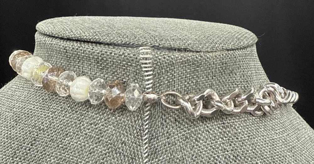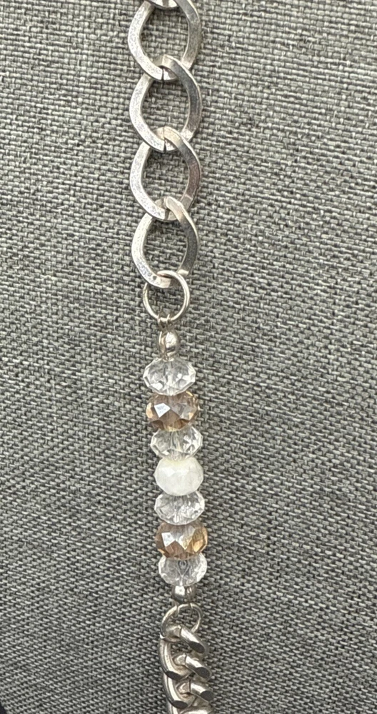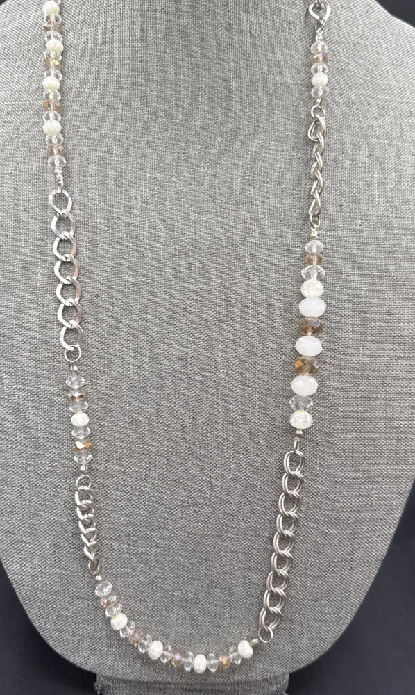 HomeNECKLACE Silver Tone Chain White Clear Beads 36 Inches See Photos