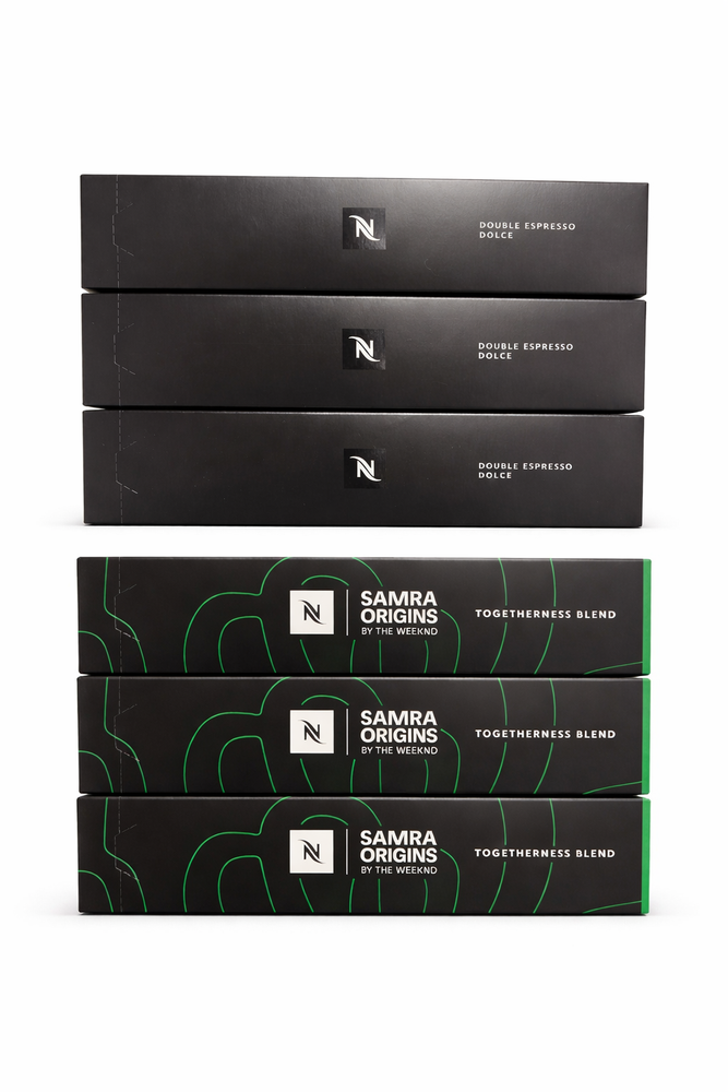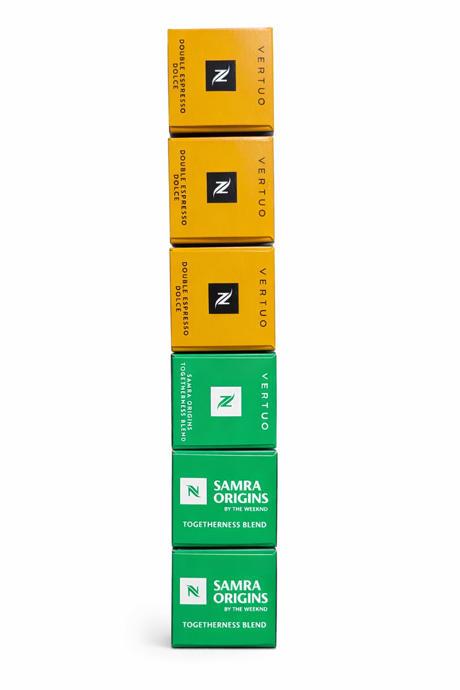 The NESPRESSO Vertuo Samra Origin Togetherness & Dolce 6 sleeves Variety offers a selection of coffee pods and capsules with a variety of flavors. Each serving has less than 50 calories and is compatible with Nespresso coffee machines. The pods are fairtrade certified, medium roast espresso with an original blend flavor. Made in Switzerland, this product includes sleeves with a total of 60 servings, suitable for a pantry and serving size of 1 cup. Perfect for those who enjoy a unique and tasty coffee experience without the need for fish or eggs allergens.