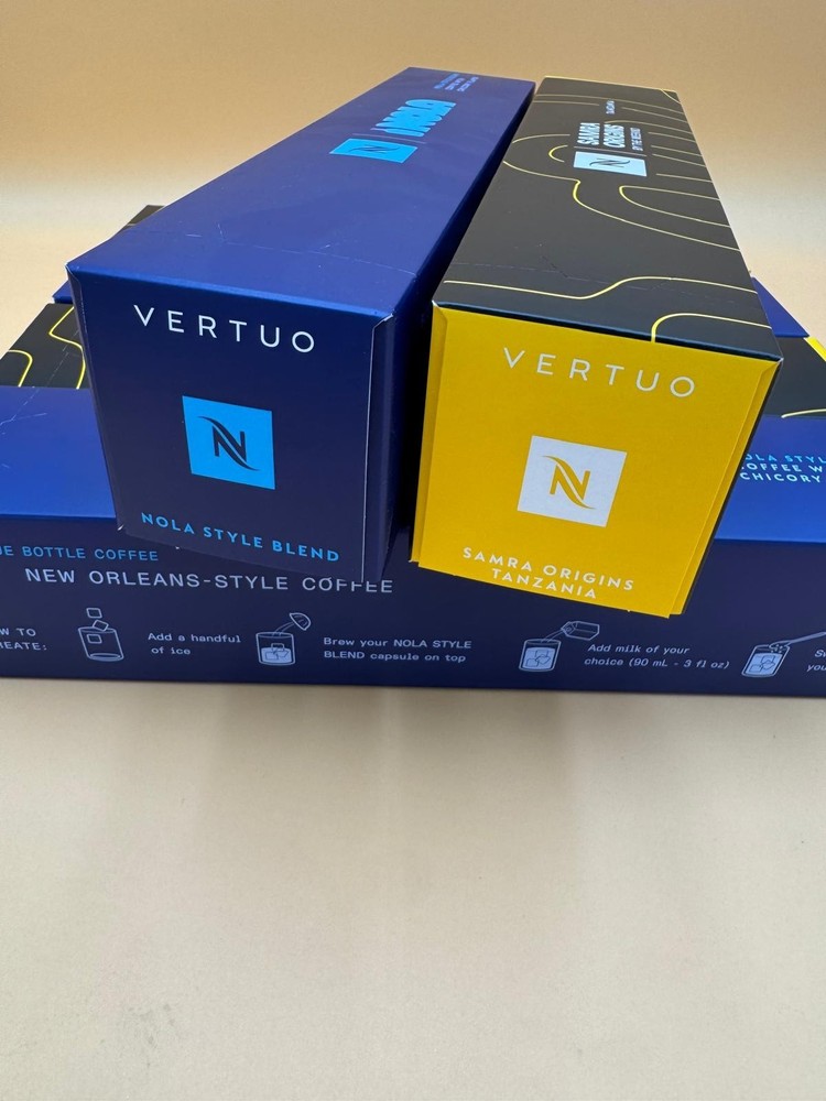 The NESPRESSO Vertuo Samra Origins Tanzania & Nola Style Blend 6 Sleeves are coffee pods and capsules designed for use with Nespresso coffee machines. This medium roast espresso blend features a Fairtrade certification and has an original flavor profile with less than 50 calories per serving. Each sleeve contains enough coffee for one cup of coffee, with a total of 20 servings included in the package. This product is suitable for individuals with dietary restrictions, as it contains no artificial coloring and is compatible with Nespresso coffee machines.