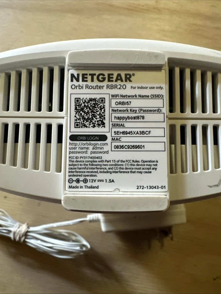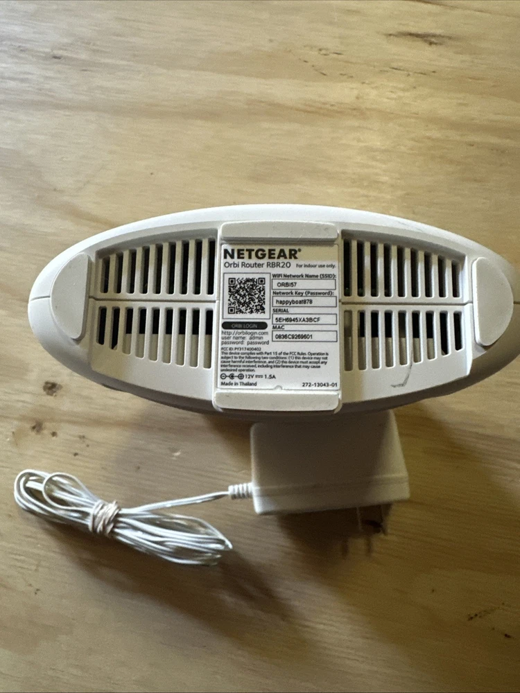 UPC:Does not applyFeatures:Tri-BandNumber of LAN Ports:1MPN:RBR20Brand:NETGEARModel:NETGEAR Orbi RBR20gtin13:Does not applyConnectivity:Wired-Ethernet (RJ-45), Wireless-Wi-Fi 802.11a, Wireless-Wi-Fi 802.11ac, Wireless-Wi-Fi 802.11b, Wireless-Wi-Fi 802.11g, Wireless, Wireless (Wi-Fi)Country of Origin:ChinaPorts:Ethernet (RJ-45)Maximum Wireless Data Rate:2200 MbpsType:RouterColor:WhiteMaximum LAN Data Rate:1000 Mbps
