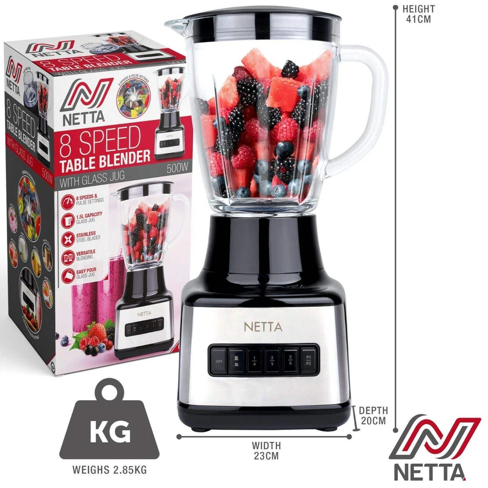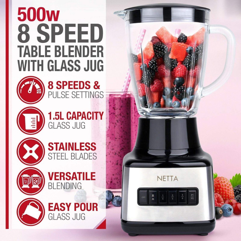NETTA Table Blender Smoothie Maker with Glass Jug for Liquidisers, Milkshake eBay Free eBay listing template designed by dewiso.com NETTA Table Blender Smoothie Maker with Glass Jug Ideal for Liquidisers, Milkshake, Ice Crusher, Smoothie, Fruit Features and further details HIGH-SPEED BLENDING: This 500W NETTA Food Smoothie Table Blender features 8 speeds and pulse settings which makes it ideal for blending frozen fruit, ice cubes, milkshakes, sauces and more! The unique 4-blade stainless steel blades make the blending fast and powerful. LARGE CAPACITY: This product includes a 1.5L glass jug which means it is perfectly suited for families. It also includes an easy-pour spout and handle which eliminates the risk of drops and spillages when using the product. EASY TO USE: Simply plug this product in, lock the parts together and go with this easy-to-use blender. With a wide range of blend settings to choose from, you’ll have no problem finding the optimum speed to blend your foods and drinks. SAFETY MATTERS: This blender has a built-in safety lock feature which ensures that you can only switch the appliance on when the cup and the blade are assembled on the motor base securely. The glass jug included with the product is BPA free for your safety and dishwasher safe for your convenience. DIMENSIONS: 23 x 20 x 41cm | WEIGHT: 2.85KG Contact us We can be contacted at any time through eBay messages if you have any questions, comments or product requests. We will respond to you within 24 hours and do our best to help you out! We encourage our customers to contact us with any questions or concerns! We'd like to be sure you are completely satisfied with your purchase. Payment Paypal Shipping Royalmail 48 or Parcelforce 24 as optional Warranty 12 Months NETTA Table Blender Smoothie Maker with Glass Jug for Liquidisers, Milkshake eBay Free eBay listing template designed by dewiso.com NETTA Table Blender Smoothie Maker with Glass Jug Ideal for Liquidisers, Milkshake, Ice Crusher, Smoothie, Fruit Features and further details HIGH-SPEED BLENDING: This 500W NETTA Food Smoothie Table Blender features 8 speeds and pulse settings which makes it ideal for blending frozen fruit, ice cubes, milkshakes, sauces and more! The unique 4-blade stainless steel blades make the blending fast and powerful. LARGE CAPACITY: This product includes a 1.5L glass jug which means it is perfectly suited for families. It also includes an easy-pour spout and handle which eliminates the risk of drops and spillages when using the product. EASY TO USE: Simply plug this product in, lock the parts together and go with this easy-to-use blender. With a wide range of blend settings to choose from, you’ll have no problem finding the optimum speed to blend your foods and drinks. SAFETY MATTERS: This blender has a built-in safety lock feature which ensures that you can only switch the appliance on when the cup and the blade are assembled on the motor base securely. The glass jug included with the product is BPA free for your safety and dishwasher safe for your convenience. DIMENSIONS: 23 x 20 x 41cm | WEIGHT: 2.85KG Contact us We can be contacted at any time through eBay messages if you have any questions, comments or product requests. We will respond to you within 24 hours and do our best to help you out! We encourage our customers to contact us with any questions or concerns! We'd like to be sure you are completely satisfied with your purchase. Payment Paypal Shipping Royalmail 48 or Parcelforce 24 as optional Warranty 12 Months × × × × × × × × Buy now and save! Shipping info Click the Shipping & Payments tab above the listing description for more info FREE Shipping Click the Shipping & Payments tab above the listing description for more info! Additional delivery notes PICK UP OPTION Sorry, our items are NOT available for pick-up. PAYMENT Immediate payment is required upon selecting "Buy It Now" or upon checking out through the cart. We accept payment via U.S. PayPal accounts and all Major Credit Cards, Debit Cards & Google Pay. We are legally required to collect sales tax in those states and localities where we maintain a physical presence (nexus). The applicable amount of sales tax charged to an order will be calculated based on the shipment destination's state and local sales tax laws. Thank you for shopping with us on eBay! Additional Information No additional information at this time Ask seller a question You might also like WINNER Fashion Mechanical Watch for Women Top Brand Luxury Watches Diamond Skele 2024 New BB58 Steel Men'S Mechancial Wristwatch Luxury Automtaic Watch for Men S Women'S Watches Simple Style Watch Women Minimalist Watch Quartz Clock Leather S Winner Transparent Golden Case Luxury Casual Design Brown Leather Strap Mens Wat Contact To contact our Customer Service Team, simply click the button here and our Customer Service team will be happy to assist. Ask seller a question © Attri´s Shipping & Payments Shipping is FREE for this item Payment Accepted Payment Methods Immediate payment is required upon selecting "Buy It Now" or upon checking out through the cart. We accept payment via U.S. PayPal accounts and all Major Credit Cards, Debit Cards & Google Pay. We are legally required to collect sales tax in those states and localities where we maintain a physical presence (nexus). The applicable amount of sales tax charged to an order will be calculated based on the shipment destination's state and local sales tax laws. Thank you for shopping with us on eBay! Returns Returns are accepted Items must be returned within 30 days of the auction ending Buyer will pay for return shipping. eBay integration by