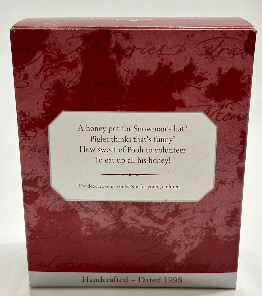 Subject:BuildingTheme:Holidaygtin13:015012457766Year Manufactured:1998Character:Piglet, Winnie the PoohCollection:OrnamentsBrand:HallmarkShape:SnowmanFranchise:Winnie the PoohType:OrnamentUPC:015012457766Occasion:Christmas