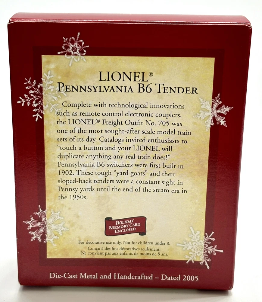 *NEVER OPENED* - 2005 Hallmark Keepsake Ornament- LIONEL PENNSYLVANIA B6 TENDER