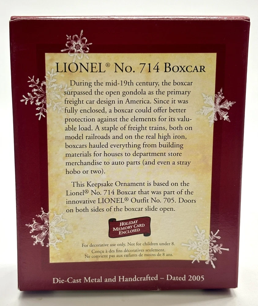 *NEVER OPENED* - 2005 Hallmark Ornament - LIONEL NO. 714 BOXCAR - 'Doors Slide'