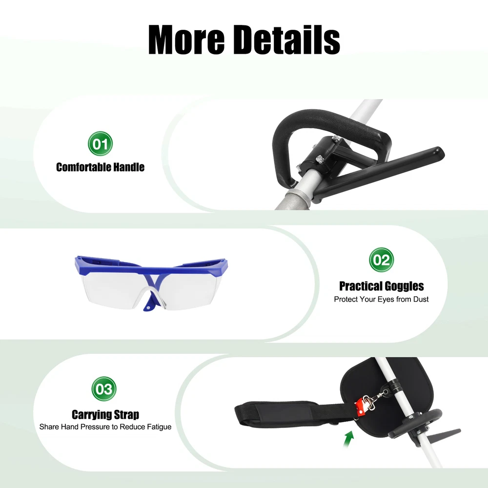 NEW 12"Gas Trimmer Saw Tree Trimmer Chainsaw Gas Powered Pole Saw Pruner Pruning This is a gas trimmer for branch and leaf pruning work in woods, orchards, and urban greenery. The gas trimmer is powered by a highly efficient 42.7cc two-stroke engine. Its 1.25KW power increases your efficiency in pruning branches. The length of the gas trimmer is 94.48-133.85 inches, so you can easily trim high branches without the risk of standing on high ground. Reach to 16ft You can easily reach up to16ft with your feet on the ground rather than balanced precariously on a ladder. Cordless gas pole saw can cut the branches on the big tree, cut wood,logging,pruning garden or orchard and so on. Besides, you can move around without worrying about the cord length and battery! Long Reach Pole Pruner / Chainsaw Blade - 300mm/12'' Total Length with Extension Pole - 340cm 105cm Long Reach Extension Pole Package Included 1x Gas Trimmer 1x Extension Pole 1x Carrying Strap 1x Screwdriver 1x Goggles 1x Fuel Proportioning Tank 1x Funnel 1x Tool Bag Other Accessories for Use Specification Engine Model: 1E40F-5A Material: Aluminum Alloy, Manganese Steel, PP Plastic Engine Power: 1.25kw/6500-8500rpm Engine Type: Air-cooled, Two-stroke, Single-cylinder Gasoline Engine Engine Displacement: 42.7cc Carburetor Type: Pump-film type Idling Speed: 2800-3200r/min Fuel Tank Capacity: 1L/0.26gal Gasoline / Circulating Oil Mixing Ratio: 20-25:1 Starting System: Manual Starter Length: 240cm-350cm/94.48-137.79in Guide Bar Size: 30.48cm/12 in Chain Pitch: 0.95cm/0.375in Chain Size: 0.05P Packing Size: 110*29*29cm/43.3*11.41*11.41in Carrying Type: Side-attached Net Weight: About 11kg/24.25lbs Gross Weight: About 12kg/26.45lbs Features Strong Power : This gas trimmer is powered by a highly efficient 42.7cc two-stroke engine. Its 1.25 kW of power makes it quick to cut branches and reduces time and effort. Good Heat Dissipation : The gas trimmer uses an excellent air-cooled cooling system to dissipate heat and cool it down in time. This can effectively prevent the engine from burning caused by long-term use and effectively prolong the service life. Large Fuel Tank : The fuel tank has a capacity of 0.26gal, which enables the engine to work for a long time. You don't need to refill the fuel tank often, which is very convenient. Good Durability : This gas trimmer is mainly made of strong and durable aluminum alloy and manganese steel. These materials will not easily deform and rust. So the gas trimmer has a long service life and you can use it with confidence. High Safety : With this gas trimmer, you won't have to climb high up in the trees to cut branches. The pole of this high branch saw is 94.48-137.79 inches long, so you can easily cut high branches by standing on the ground, which is safer for users. Easy to Install : The gas trimmer comes with detailed installation and operation instructions. You can follow the detailed instructions for installation and operation, which is simple and convenient. Removable Design : This gas trimmer features a removable design. The disassembled trimmer won't take up much space, allowing you to store and carry it easily. Customer Service : We aim to provide quality products and services. If you have any problems, please feel free to contact us. We will reply and solve the problem for you as soon as possible. Details Manganese Steel Chain and Guide Plate : The chain and guide plate are made of high-quality manganese steel. The excellent strength and hardness of manganese steel make the product more efficient in cutting. Multiple Heat Sinkholes : The gas trimmer's housing has multiple heat sinkholes to dissipate heat in time to protect it from burning out. Non-slip Handle : This gas trimmer has a comfortable non-slip handle. This handle gives you a firmer grip on the machine and allows for more precise operation. Application This gas trimmer is suitable for agriculture, forest firefighting, gardening, and other fields for sawing off high branches, small trees, etc. Installation of Saw Plate 1. Remove the cover plate. 2. Install the saw plate, paying attention to the hole position. 3. Install the chain, paying attention to the direction of the blade. 4. Adjust the chain tightness. 5. Lock the nut. 6. Installation is complete. Notes Please allow the slight color difference caused by the shooting light and 1-3cm error due to manual measurement. Please make sure you do not mind before you order. Payment Delivery details Terms of sales About us Contact us Payment We accept ebay payment 。 Fees such as import duties, taxes are not included in the item price or shipping costs. These charges are the buyer's responsibility. Delivery details Shipping: 2-9 working days to: USA Terms of sales We maintain high standards of excellence and strive for hundred percent customer satisfaction. Feedback is very important to us. We hope that you contact us immediately before you give neutral or negative feedback, so that we can address your concerns. It is impossible to address issues if we do not know about them! About us Your satis faction is our ultimate goal. We work hard to earn your trust and future business. Our certified technicians have tested each item before shipping. The unit comes with 1 year limited warranty on all manufacturing defects. a) If you receive a defective item, you may return it or ask for a discount. Please contact us within 14 days after you receive the package. b) What you returned must be intact and in its original packaging as re? u. Customer is responsible for shipping costs of the returned item. c) We will cover the cost of shipping back t with the shipping rate indicated in the registration page. We will send you a new unit or refund the full payment you paid. Thank you. Contact us Business Hour Business Hour: Monday To Friday: 8:30 AM to 5:00 PM (Beijing China time) Due to time zones, our reply to your questions may not be immediately. But within above working time, we will reply your email w