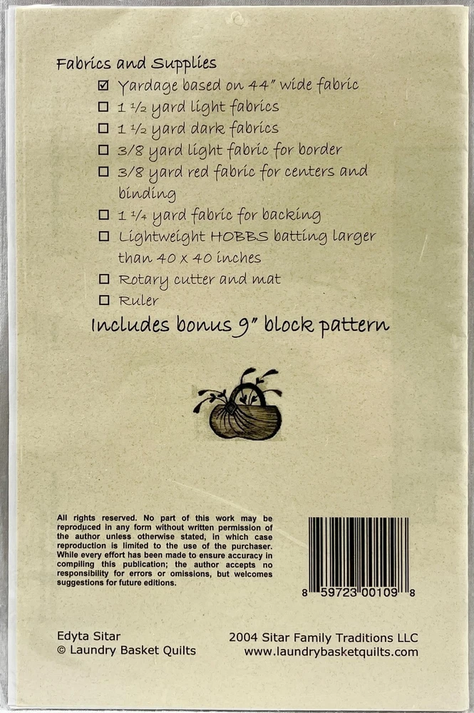 Vintage 2004 Laundry Basket Quilts Sewing Pattern #LBQ-BS01-P "Broken Star" wall quilt Finished size 40" x 40" Pattern is in new, never used condition
