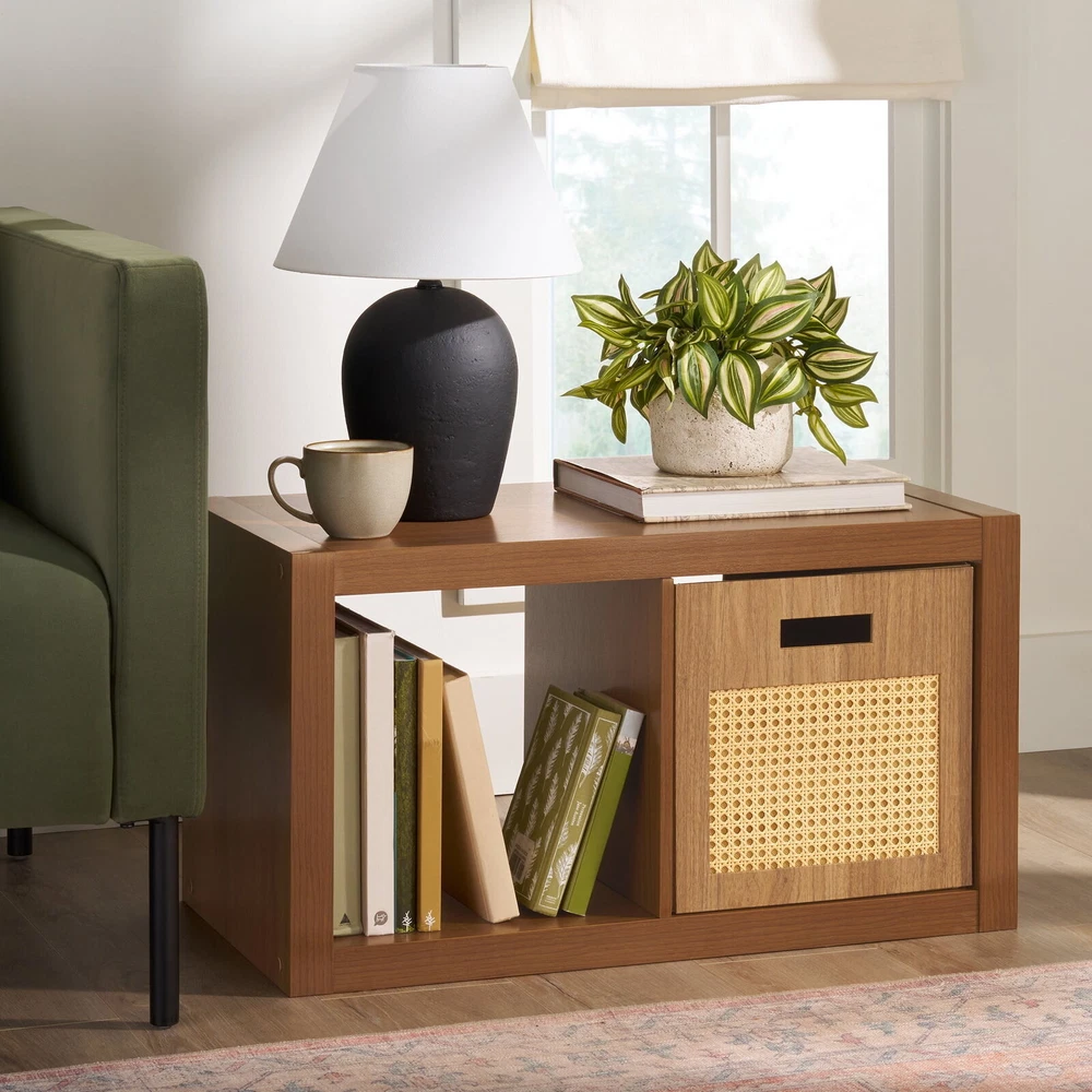 Add function and style to your home with the Better Homes & Gardens 2-Cube Storage Organizer. Available in multiple finishes, including both solid and wood grain options, this cube organizer features two 13" x 15" x 13" compartments, the perfect size to display books, collectibles, photos, artwork, storage bins and baskets. An open back design makes it easy to manage cords and cables. This sturdy bookcase can stand vertically or horizontally to best suit your needs and space. The top panel supports up to 148 lbs when vertical and 44 lbs when horizontal. Combine it with other Better Homes & Gardens Cube Organizers and Cube Storage Bins (sold separately) to create a complete, customized storage and display system. Easy to assemble, the Better Homes & Gardens 2-Cube Storage Organizer is perfect for your office, living room, den, playroom and more. Features two 13" x 15" x 13" compartments Modern, open back design for easy cord management Compatible with Better Homes & Gardens Cube Storage Bins (sold separately) Versatile design allows for vertical or horizontal placement Top panel can support up to 148 lbs when vertical or 44 lbs when horizontal; each cube supports up to 22 lbs Can be combined with other Better Homes & Gardens Cube Storage Organizers (sold separately) Materials: MDF, particle board Easy to assemble with included instructions (no additional tools required) Package size: 37.01" x 6.38" x 18.11" (25.21 lbs) On Feb 4, 2025 at 00:24:16 PST, seller added the following information:
