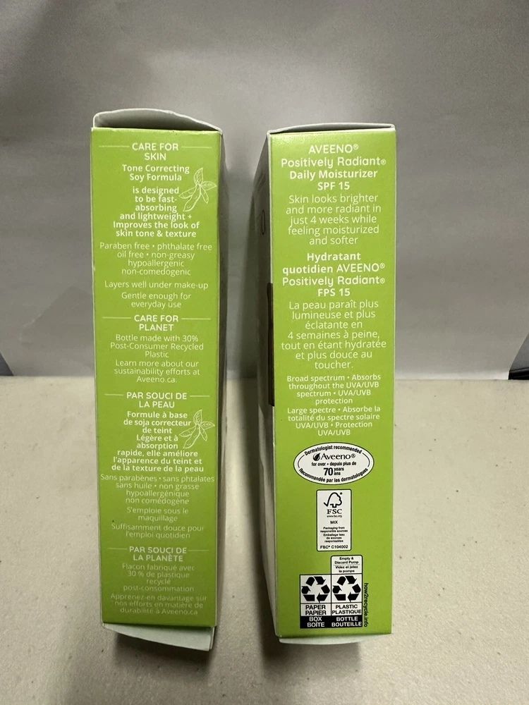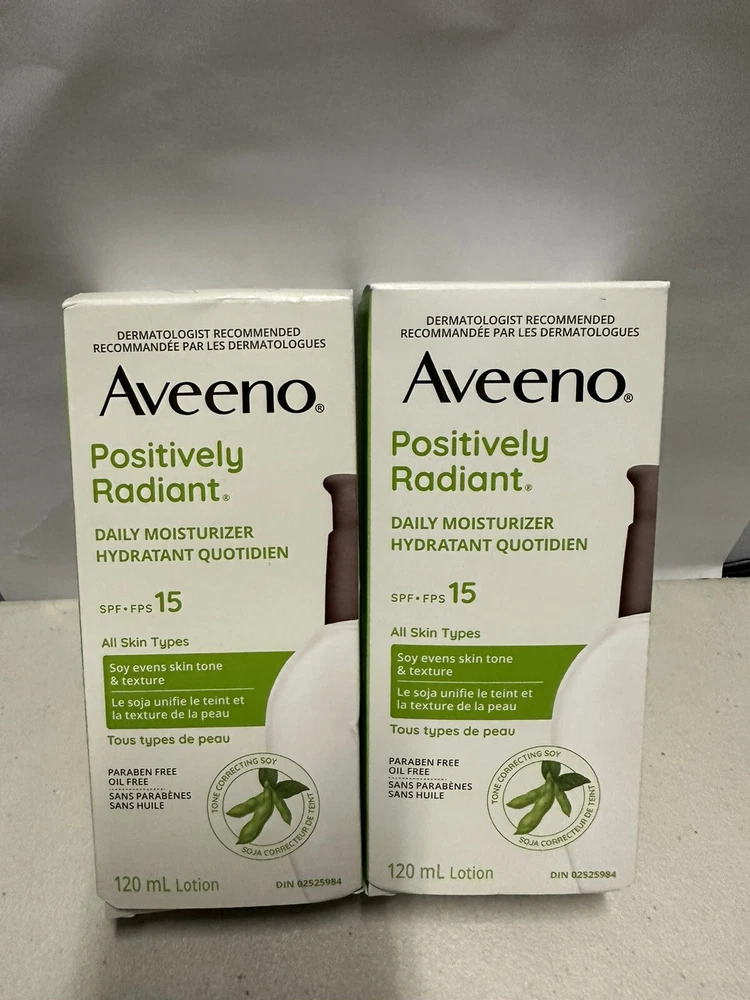 NEW! 2X! Aveeno Positively Radiant Daily Moisturizer, SPF 15, 4 oz EXP 2025 Fast and Free Shipping Within The US