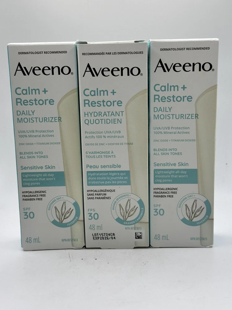 NEW! 3X! Aveeno Calm + Restore Daily Moisturiser SPF 30 1.7 fl.oz Exp 02/2026