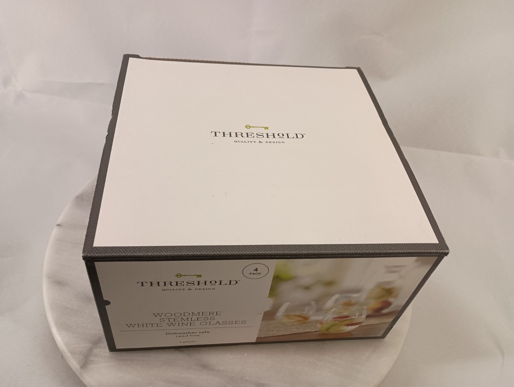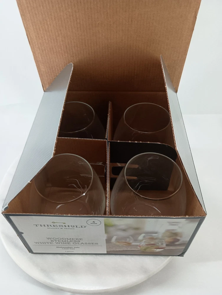 Elevate your wine-drinking experience with this set of four Woodmere Stemless White Wine Glasses from Threshold. Designed with a modern stemless style, these glasses are perfect for any adult occasion. The clear glass material allows you to fully appreciate the color and texture of your favorite white wines. Each glass holds up to 16 oz. of liquid and is made of high-quality glass material. The set includes four glasses, making it perfect for sharing with friends or family. With a brand name like Threshold, you can trust that you're getting a quality product. Thank you for visiting my listing today and thank you for your interest in this item! My goal is to have a pleasant transaction resulting in a satisfied customer. I hope any transaction between us leaves you with a feeling of confidence knowing you can trust me and the items I offer here. *Most if not all my listings are set to accept offers. Feel free to send an offer and I will be happy to consider it!! *Please contact me with any questions or concerns and I will be happy to help. *Always examine the photos carefully, and if in doubt, email me with any questions you may have. *Please note that condition statements are offered as a guide only. They will always be somewhat subjective and reflect our opinion, which may not necessarily agree with someone else's opinion. PLEASE READ: I aim to please and I want my buyers to have a positive transaction with me. If you have questions, concerns, or special requests related to any of my items I hope you will contact me so we can work them out to your satisfaction. I sell my items to give you a great item at a decent price while making a little profit at the same time. If you feel the item you are interested in is too pricey do not hesitate to send me a fair offer and I will consider it. My goal is to satisfy your needs and mine so both parties can benefit. SHIPPING: If you prefer a different shipping method or company please contact me and I will do all I can to make that happen. If you have concerns or requests about the packaging of your item contact me and I will do all I can to accommodate them. Shipping costs are based on location in each state or country, the costs always differ. After I have received your payment I will ship your item out within 3 business days or less excluding weekends and holidays. BEFORE PURCHASING & BIDDING: **Please see all the pictures. I do not have great photography skills but I try to get the most accurate photos I can. If you are unsure about something you see in a photo contact me so I can do what I am able to answer your concern about the item. **I cannot stress enough that if you have any questions or concerns please contact me before purchasing and bidding. Communication can solve so much. **As a customer myself, I understand the meaning of customer satisfaction and my goal is to have nothing but satisfied customers. If you are not unsatisfied with your purchase I ask that you please contact me so I can take care of your issue. My goal is for you to be 100% satisfied. INTERNATIONAL BUYERS WELCOMED - PLEASE NOTE: I welcome International buyers! Please be aware that any custom/duties/taxes that the parcel might incur once it is out of the USA are the responsibility of the buyer. Please check with your country's customs office to determine what these additional costs will be prior to bidding or buying. Please refer to the eBay Site Map for more information if needed.