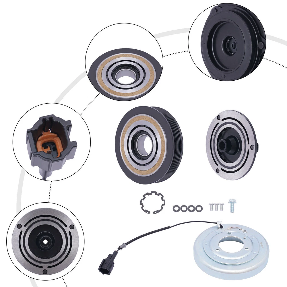 NEW A/C AC Compressor Clutch Kit For Nissan Altima 2002-2006 Maxima 2003-07 3.5L Applications: For For Nissan Altima 2002-2006 3.5L For For Nissan Maxima 2004-2007 3.5L Descriptions: The three main parts of the compressor clutch assembly are the coil magnet, the pulley, and the clutch plate. The clutch drive plate is splined to the input shaft of the compressor. For Nissan Altima 02-06 For Maxima 03-07 3.5L AC A/C Compressor Clutch Kits Applications: For For Nissan Altima 2002-2006 3.5L For For Nissan Maxima 2004-2007 3.5L Descriptions: The three main parts of the compressor clutch assembly are the coil magnet, the pulley, and the clutch plate. The clutch drive plate is splined to the input shaft of the compressor. The compressor clutch is a large electromagnet that, when energized, draws the clutch plate into the clutch pulley. The magnetic field holds the clutch plate tightly against the clutch pulley as long as current is supplied to it. This in turn engages the drive pulley to the compressor input shaft, causing the shaft to spin. When the compressor clutch is not engaged, the input shaft of the compressor does not spin and the drive pulley freewheels on a sealed bearing assembly. Package Included: 1 x Pulley With Bearing 1 x Front Plate 1 x Electromagnetic Coil Item Specifics Brand : autodayplus Manufacturer Part Number : ADP10428DA162S Warranty : 1 Year Interchange Part Number : CO 10874JC,92600CA02B, 92600CA03B, 10346160 Other Part Number : 67438, 68438, 5511696, 140142C, 10000657, 700710 Superseded Part Number : 926008J00B, 926008J120, 92600CA020, 92600CA02A Reference OE Part Number : 471-5008, CO 10874Z, CO 10874V,2678, 035095, 638783 Fitment Type : Direct Replacement Type : AC Compressor Clutch Pulley Grooves : 6 Grooves ( if you want cancel orders or change address pls contact us within 6 hours after payment,or we are not responsible for shipping a replacement. ) 1. Orders processed within 24-48 hours of payment verification. 2. We only ship to confirmed PAYPAL addresses. Your PAYPAL address must match your Shipping address. 3. The images shown are not the actual item and are for your reference only. 4. Fast shipping:All our packages use USPS First Class Package Service 5. If you have not received your shipment within 15 days from payment , please contact us. We will track the shipment and get back to you as soon as possible with a reply. Our goal is customer satisfaction!lll. We maintain high standards of excellence (five stars review)and strive for 100% customer satisfaction! FEEDBACK IS VERY IMPORTANT TO US. We request that you contact us immediately BEFORE you give us neutral or negative feedback, so that we can satisfactorily address your concerns. 2. It is impossible to address issues if we do not know about them!1. We accept payment via PAYPAL only. 2. Payment must be made within 4 days of auction closing. 3. Total amount due includes the final auction price plus S&H(Shipping and Handling). 4. S&H will be determined based upon the SHIP TO address.PLEASE NOTE: S&H dons not include duties,local taxes.1. We accept payment via PAYPAL only. 2. Payment must be made within 4 days of auction closing. 3. Total amount due includes the final auction price plus S&H(Shipping and Handling). 4. S&H will be determined based upon the SHIP TO address.PLEASE NOTE: S&H dons not include duties,local taxes.1. We accept payment via PAYPAL only. 2. Payment must be made within 4 days of auction closing. 3. Total amount due includes the final auction price plus S&H(Shipping and Handling). 4. S&H will be determined based upon the SHIP TO address.PLEASE NOTE: S&H dons not include duties,local taxes. WARNING: Cancer and Reproductive Harm - www.P65Warnings.ca.gov. 1. Orders processed within 24 hours of payment verification.( if you want cancel orders or change address pls contact us within 6 hours after payment,or we are not responsible for shipping a replacement. ) 2. We only ship to confirmed PAYPAL addresses. Your PAYPAL address must match your Shipping address. 3. The images shown are not the actual item and are for your reference only. 4. Fast shipping:All our packages use USPS First Class/UPS/Fedex... Package Service 5. If you have not received your shipment within 15 days from payment , please contact us. We will track the shipment and get back to you as soon as possible with a reply. Our goal is customer satisfaction! 1. You have 30 days to contact us and 10 days to return it from the date it was received. If this item is in your possession more than 7 days, it is considered used and we will not issue you a refund or replacement. There are NO EXCEPTIONS! 2. All returned items must be in the original packaging and you must provide us with the shipping tracking number, specific reason for the return, and item custom lable. 3. We will refund your full winning bid amount, upon receipt of the item in its original condition and packaging with all components and accessories included, AFTER both Buyer and Seller cancel the transaction from eBay. OR, you may choose to have a replacement. 4. Return shipping is to be paid by the Buyer . 1. We maintain high standards of excellence (five stars review)and strive for 100% customer satisfaction! FEEDBACK IS VERY IMPORTANT TO US. We request that you contact us immediately BEFORE you give us neutral or negative feedback, so that we can satisfactorily address your concerns. 2. It is impossible to address issues if we do not know about them! 1.We only accept PayPal. 2.Please do not use the PayPal note field to indicate us to ship to other address. The note there will NOT be read. If you want to change the shipping address, please contact us by eBay messages. 3. ( if you want cancel orders or change address pls contact us within 6 hours after payment,or we are not responsible for shipping a replacement. ) 4.Payment must be received within 10 days as auction ended or order might be delayed. Key Features Build to Last: Steel, copper, and electroplating process mak