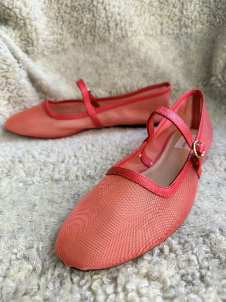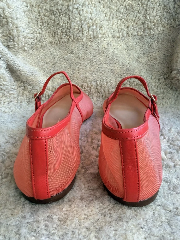 The NEW Antonio Melani Remmie Mesh Mary Jane Flats in red/orange, US size 11, are a stylish and comfortable option for women. Made with mesh fabric and the upper material being mesh as well, these flats are perfect for everyday wear. Designed with a Mary Jane style, these shoes offer a trendy look with a hint of color, making them a versatile addition to any wardrobe. Made in Brazil, these Antonio Melani flats are a quality and fashionable choice for any woman looking for a pop of color in their footwear collection.