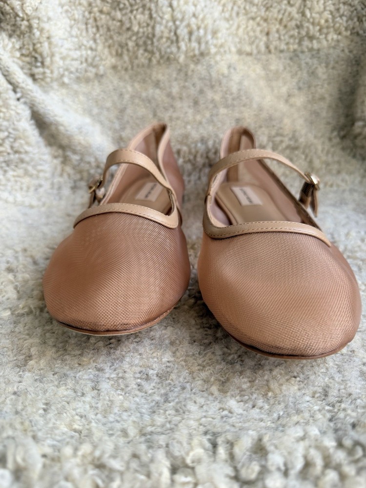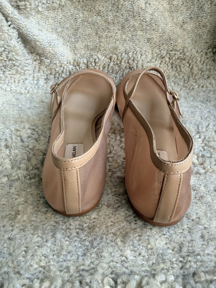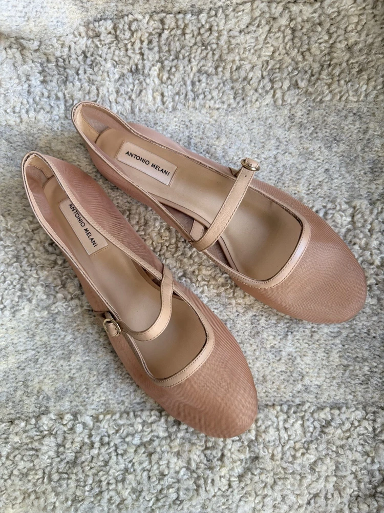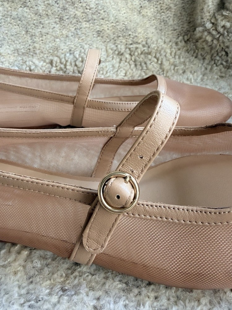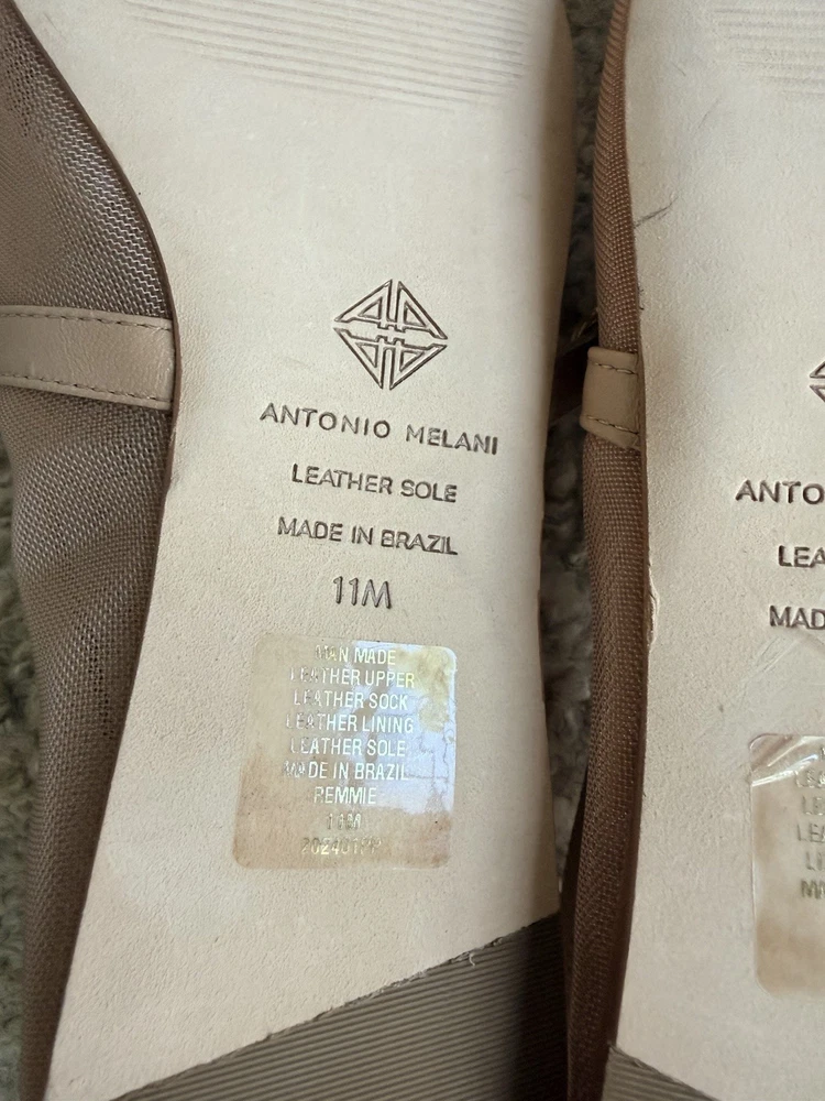 The product is a pair of Antonio Melani Remmie Mesh Mary Jane flats in a tan or beige color, designed for women in a US shoe size 11. Made with mesh fabric and upper material, these flats have a stylish mary jane design that originated from Brazil. Perfect for adding a touch of elegance to any outfit, these stylish flats offer both comfort and fashion-forward style.