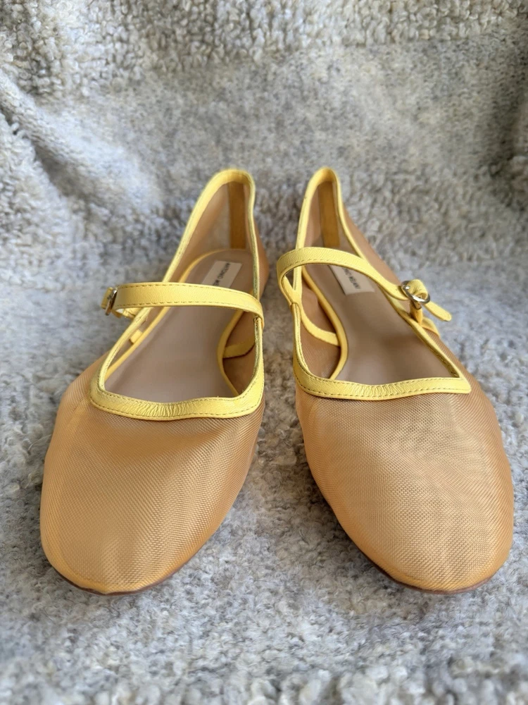 The NEW Antonio Melani Remmie Mesh Mary Jane Flats,, US size 11, are a stylish and comfortable option for women. Made with mesh fabric and the upper material being mesh as well, these flats are perfect for everyday wear. Designed with a Mary Jane style, these shoes offer a trendy look with a hint of color, making them a versatile addition to any wardrobe. Made in Brazil, these Antonio Melani flats are a quality and fashionable choice for any woman looking for a pop of color in their footwear collection.