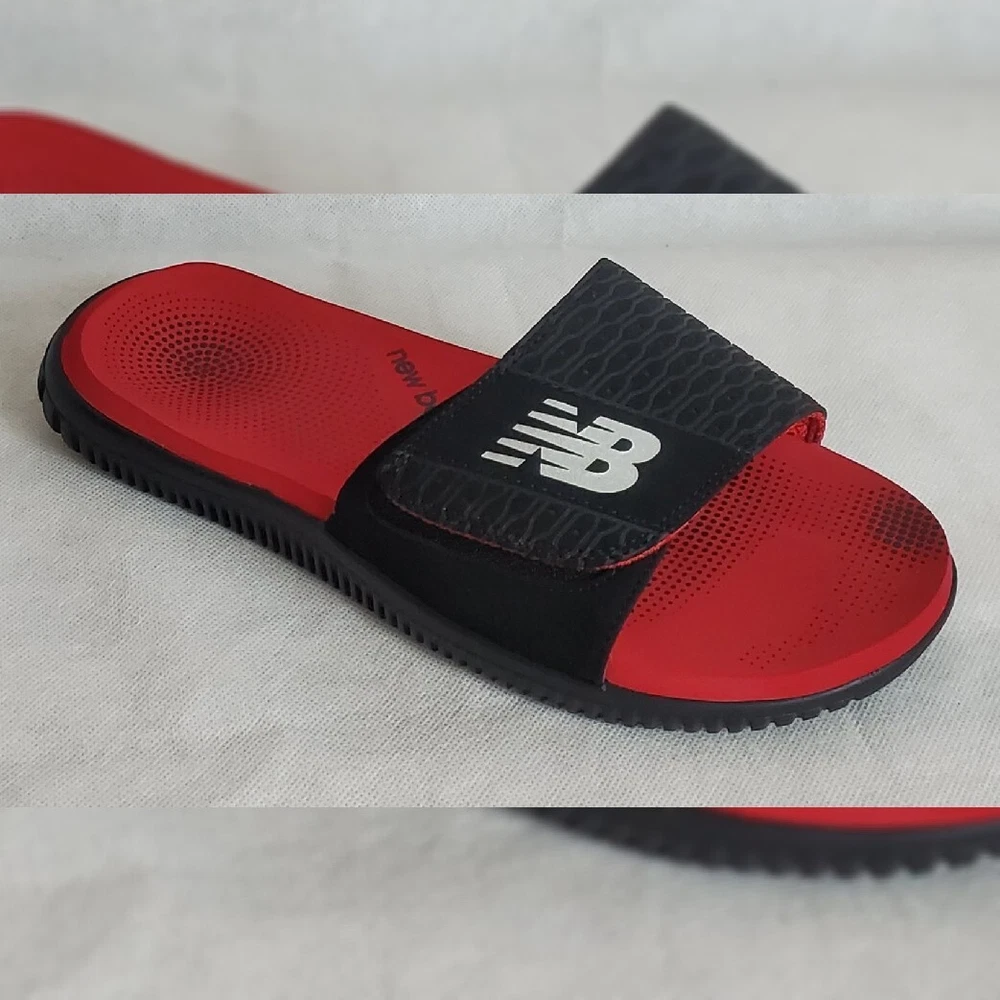 NEW BALANCE AUTHENTIC MOJO SLIDE SANDALS MEN'S ADJUSTABLE STRAP SIZE 8 RED/BLACK COMFORT.CONDITION IS WITH TAGS.