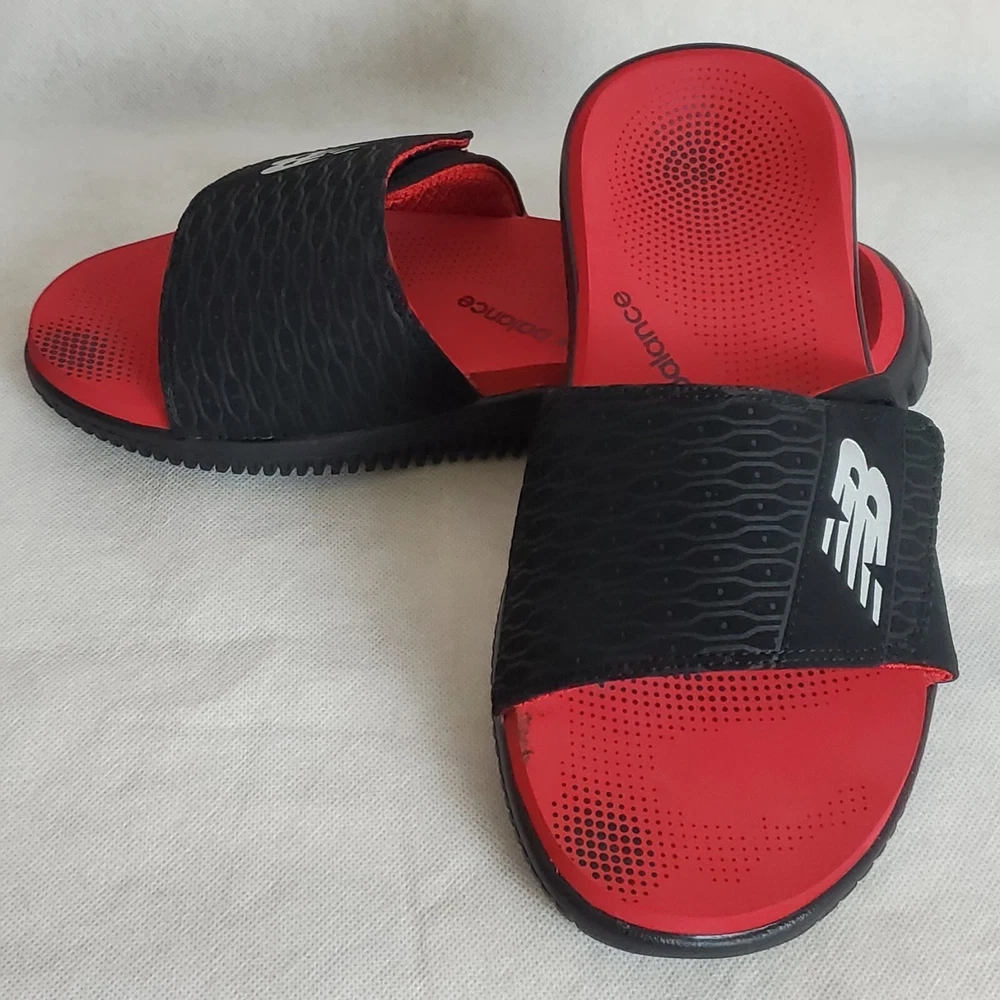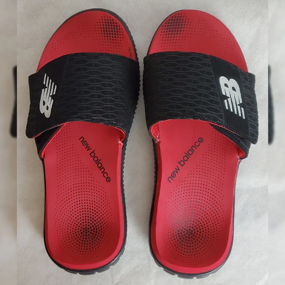 NEW BALANCE MOJO SLIDE SANDALS MEN'S ADJUSTABLE STRAP SIZE 8 RED/BLACK COMFORT