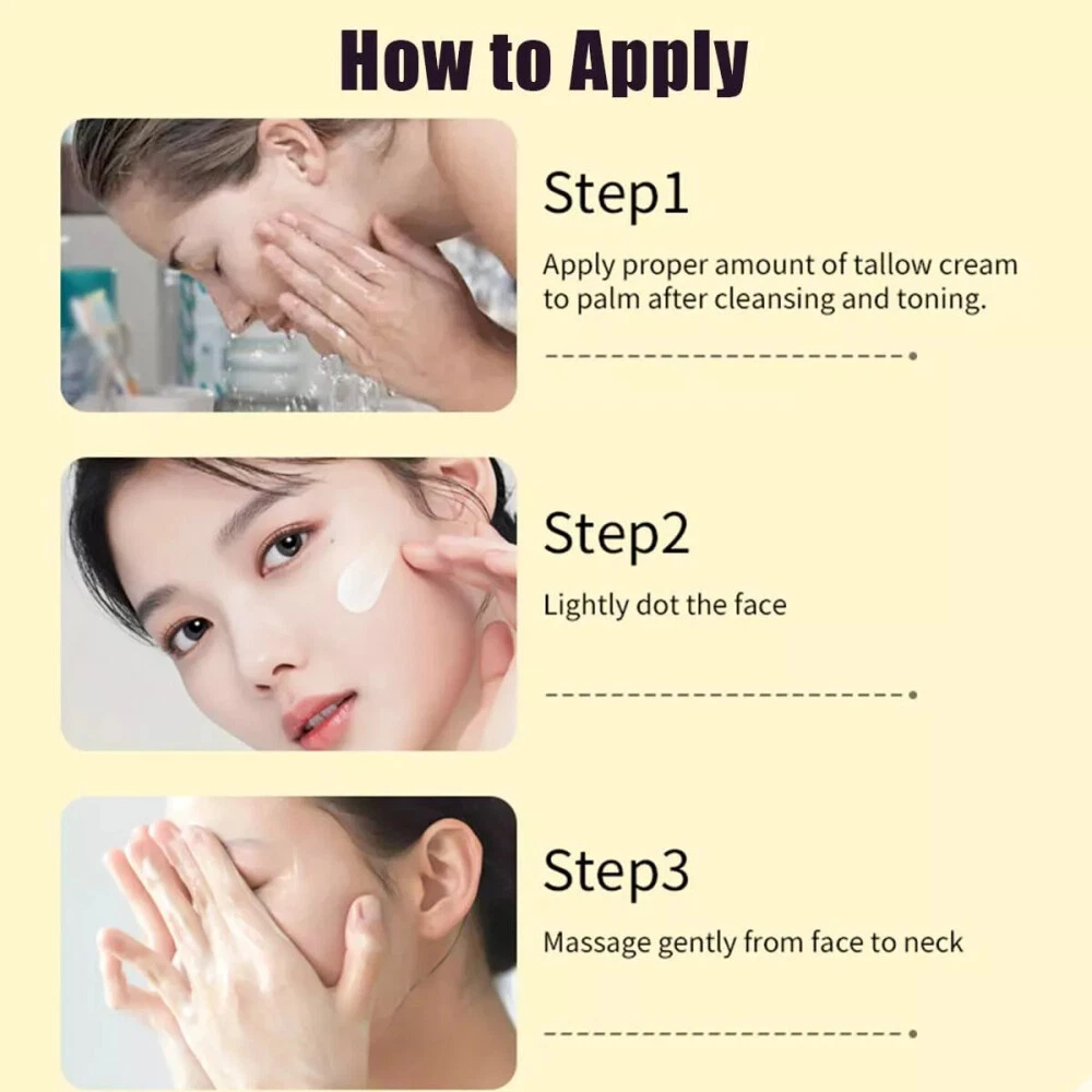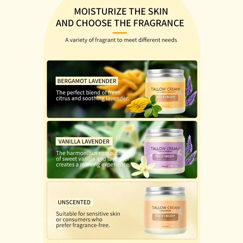 Product Description ✨ Welcome to our store! ✨ Hydrating and Nourishing:The Organic beef tallow blam is designed to soothe and improve cracked, dry skin.This body moisturiser's rich formula provides essential hydration and nourishment, leaving your skin with a healthy glow Natural Ingredients:The Tallow face moisturizer is made of high-quality formula, rich in tallow,vitamin,olive extract and other formula,can gently moisturize and hydrate the skin,provide your skin with long-lasting moisturizing, elastic and rejuvenating All Purpose Skin Balm:Handmade tallow balm is an all-in-one skin balm that can be used as a moisturizer, toner, lotion, foot & hand cream, sunburn soothing cream, and so on.Delivering comprehensive hydration for soft, supple skin Suitable For All Skin Types:Our tallow honey balm body lotion pampers your skin clean and refreshed.The tallow honey balm face moisturiser is safe for all skin types. If you have dry skin,face moisturiser for dry skin may take longer.For normal skin type, about 15 mins Perfect Gift for Women: Our tallow face moisturizer is a natural product with excellent skin care effects, tallow face moisturizer suitable for both male and female adults, beef tallow for skin is the best gift for your own husband, wife, male and female friends Product Specification Product Name: Butter Cream Butter Moisturizer Grass-fed Butter Moisturizer Face Cream Moisturizer Butter Honey Moisturizer Body & Face Moisturizer Packaging Material: Carton Ingredients: Grass-fed beef tallow and olive oil Product Type: Butter Cream Shelf life: 3 years Product Characteristics PREMIUM QUALITY INGREDIENTS: Butter & Honey Skin Balm is made from organic grass-fed beef tallow and olive oil. ALL-PURPOSE BUTTER BALM: This natural skin care product soothes dry and chapped skin, providing essential care and moisturization to leave your skin nourished and revitalized. FACE & BODY SKIN CARE: Sapium Honey Moisturizing Cream is a multi-purpose, multi-functional product that can be used as a face, body, hand and foot cream to provide complete moisturization to the skin, leaving it soft and supple. SUITABLE FOR ALL SKIN TYPES: This Tallow Honey Body Cream is free from potentially irritating essential oils and is made with natural ingredients that are gentle and non-irritating. Safe for sensitive skin, it provides optimal moisturization and nourishment for healthy, radiant skin. SAFETY WARNING: Avoid contact with eyes and keep away from open flame or direct heat. SKIN CARE DAY: Use it as part of your daily skin care routine to improve skin problems. Payment Policy Shipping Policy Returns Policy