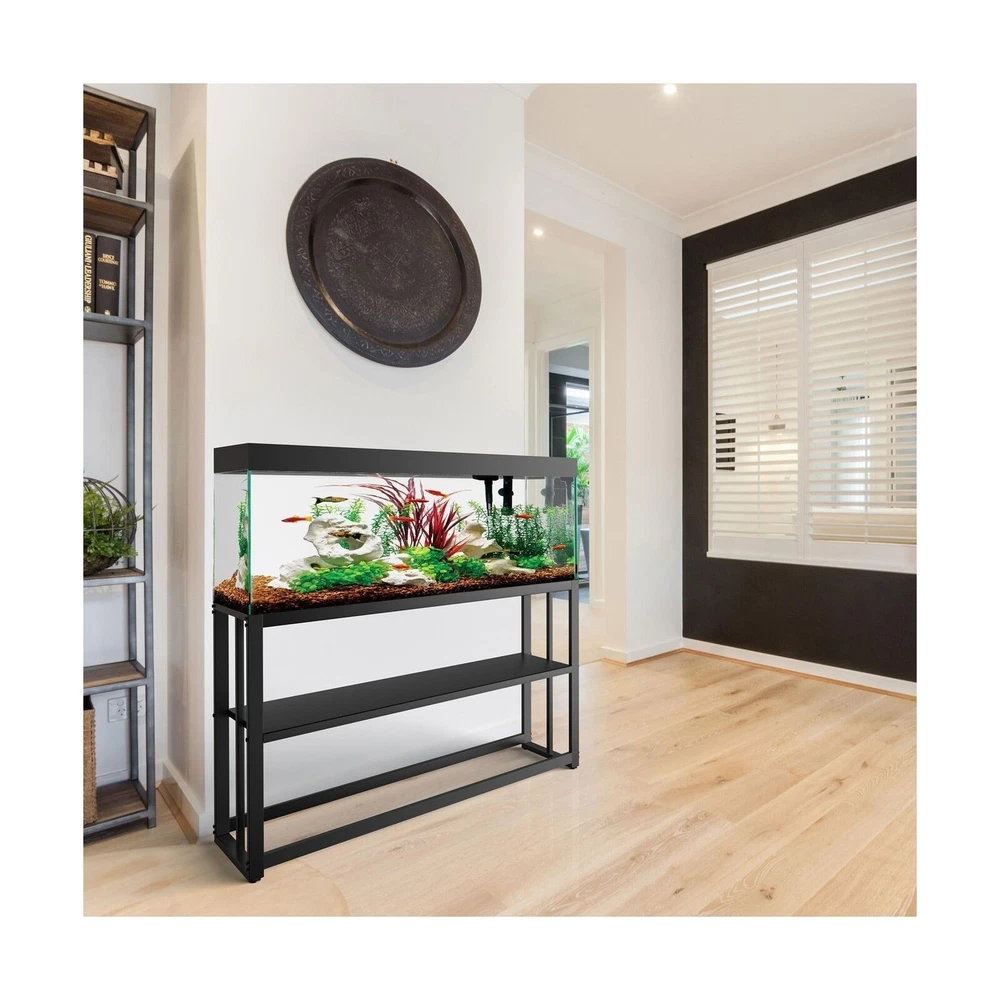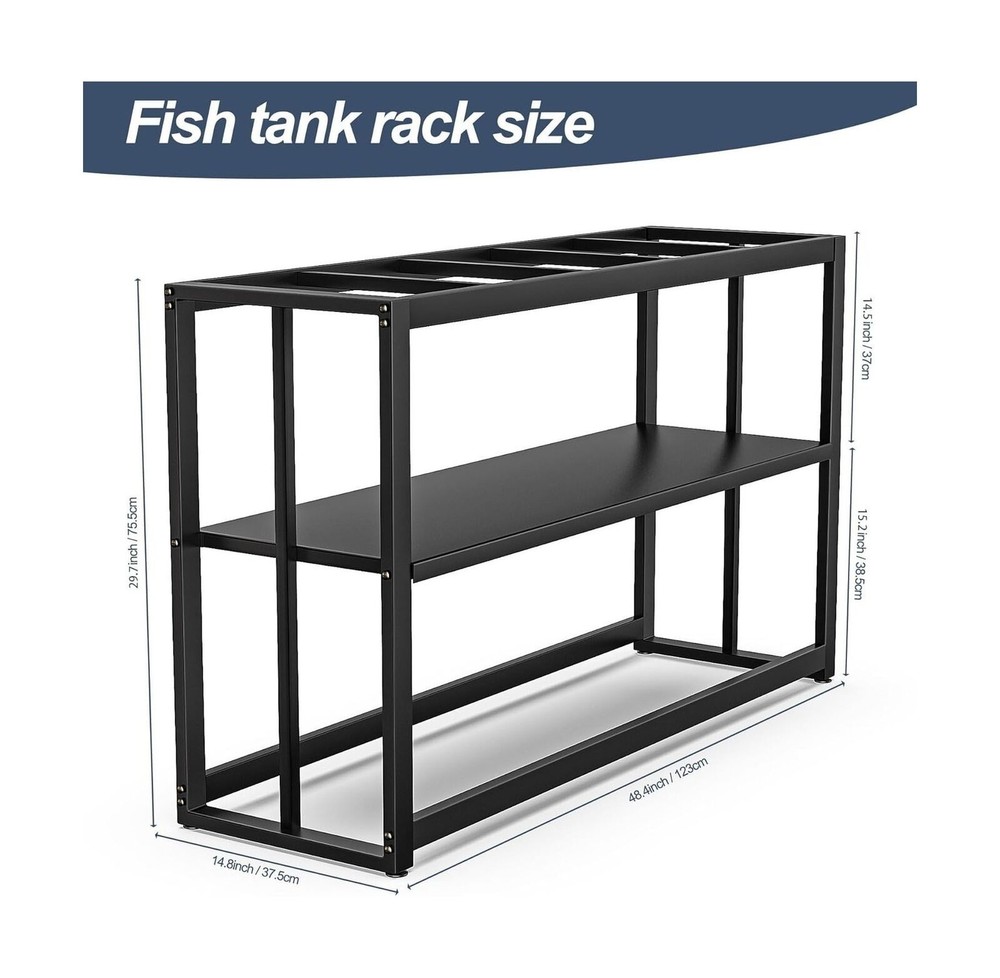 Black Fish Tank Stand Metal Aquarium Stand 55-75 Gallon Aquarium Turtle Tank 48.4" x 14.8" x 29.1" Breeder Reptile Tank Stand Description "Are you tired of flimsy and unstable fish tank stand that can't hold the weight of your aquarium? Look no further than our top-of-the-line aquarium stand made with high-quality stainless steel and a sleek black rust-resistant coating. 👍55 gallon tank stand specifications: Material: stainless steel Color: black Size: 48.4"" L 14.8"" W 29.1"" H Compatibility: 55 gallon fish tank, 990 lbs 👍Rugged stainless steel construction Designed to accommodate a 55 gallon fish tank, this tank stand can hold up to 600 pounds with its sturdy structure. It's incredibly sturdy and looks great in your living room. 👍Practical double space The top layer of aquarium stands is perfect for your aquarium, while the bottom layer provides additional storage space for all your fish-keeping essentials. 👍Minimalist and stylish appearance Measuring at 48.4 inches in length, 14.8 inches in width, and 29.1 inches in height, this reptile tank stand is not only functional but also aesthetically pleasing. 55 gallon breeder tank stand sleek and modern design will complement any home décor, making it the perfect addition to your living room, bedroom, or office. 👍No tools to assemble One of the best things about our fish tank stand is that it requires no tools for assembly. Simply follow the easy-to- understand instructions and you'll have your stand set up in no time. Even if you're a beginner or have never assembled furniture before, you'll find aquarium stand easy to put together. 👍Quality Assurance So, why not act now when you can have this durable, practical and stylish 55 gallon tank stand? We team the quality of this fish tank stand with confidence and are willing to help you with any questions you may have about it." Features: 55 GALLON TANK STANDAre you looking for a sturdy and reliable fish tank stand for your aquarium? Look no further than our fish tank stand! Measuring 48.4" long, 14.8" wide, and 29.1" high, this aquarium stand is designed to accommodate aquariums up to 55 gallons in size. With a weight capacity of 990 pounds, you can rest assured that your aquarium will be safe and secure. EASY ASSEMBLY & NO TOOLS REQUIREDThe 55 gallon breeder tank stand is unlike other stands that require complicated tools and instructions, our stand can be assembled in minutes without any tools. This makes 55 gallon reptile tank stand a great choice for those who need a stand that can be easily moved or disassembled. BUILT TO LASTOur fish tank stand is constructed from high-quality stainless steel, ensuring that it will withstand the test of time. The aquarium stand is coated with a rust and corrosion-resistant material, making it suitable for use in humid environments. With reptile tank stand sleek and modern design, our stand will complement any decor. VERSATILE DESIGNThis double layer fish tank stand is not just a stand - In addition to supporting your aquarium, reptile tank or fish tank, the tank stand can be used as a storage unit for your aquarium supplies, or even as a decorative piece in your home. With its clean lines and modern design, our stand will add a touch of elegance to any room. SATISFACTION GUARANTEEFizgot specializing in the design and production of fish tank stand, we are committed to providing the highest level of customer satisfaction. If you have any questions about this 55 gallon tank stand please contact us and we will give you a satisfactory reply within 24 hours. Product Details: Color: black Material: Metal Brand: Fizgot Assembly Required: Yes Load Capacity: 990 lbs UPC: 786194573451 Package Dimensions: 45.3 x 15.3 x 6.8 inches Item Weight: 30.4 pounds Country of Origin: China Batteries required: No On Oct 31, 2025 at 20:42:16 PDT, seller added the following information: On Nov 21, 2025 at 23:26:50 PST, seller added the following information: