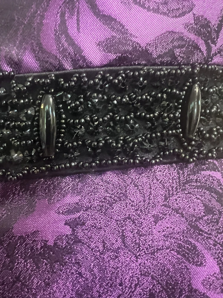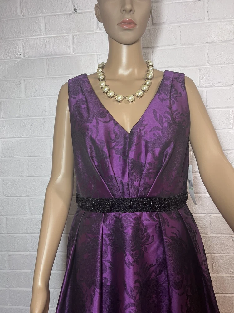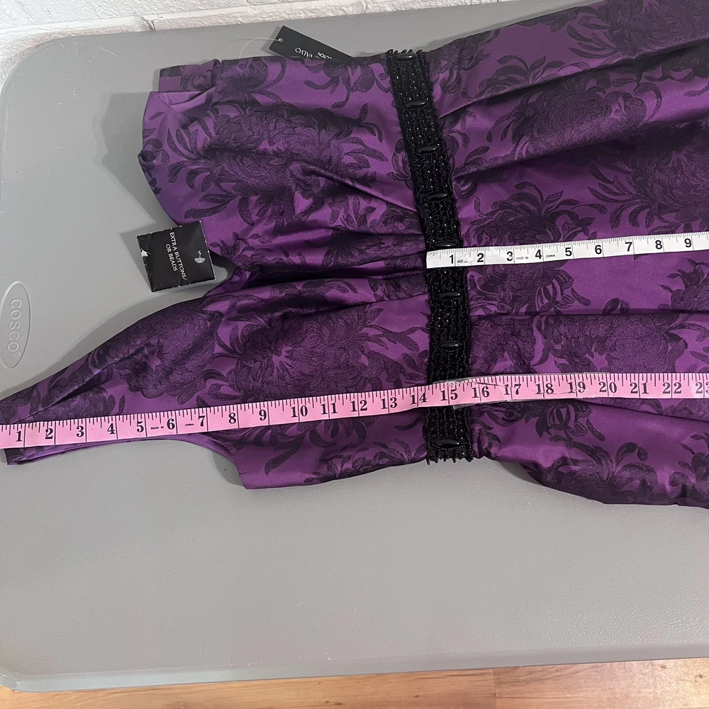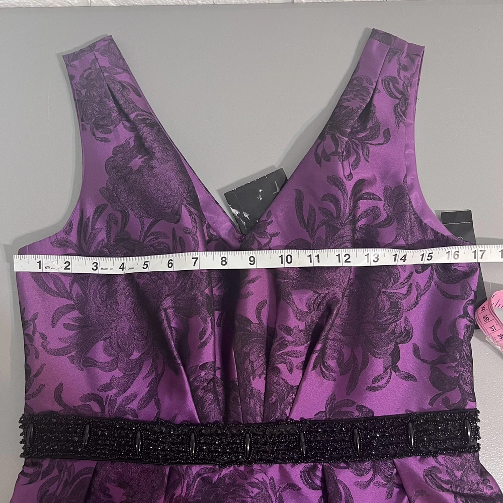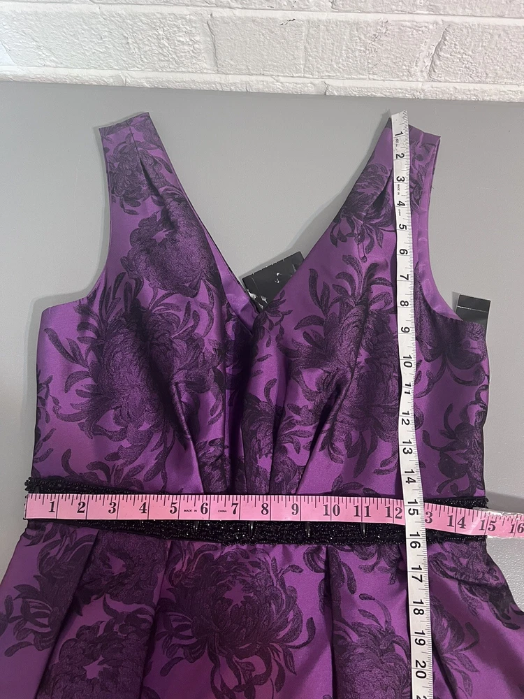 NEW CARMEN MARC VALVO Collection Vintage Dress Purple Size 8. This is a beautiful cocktail dress in a purple and black brocade fabric with black beading around waist. And it have pockets. Carmen Marc Valvo is a Luxe evening formal and cocktails dress designer . Retail price was $565 A3