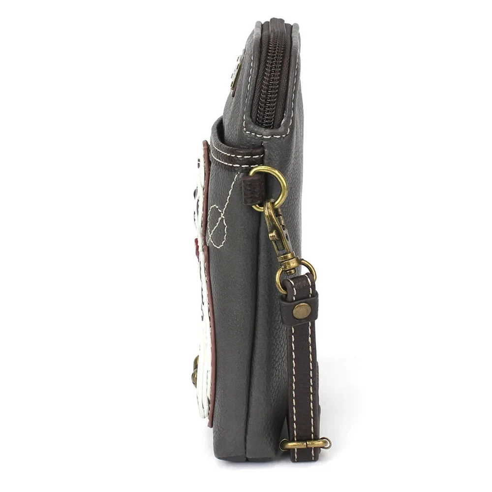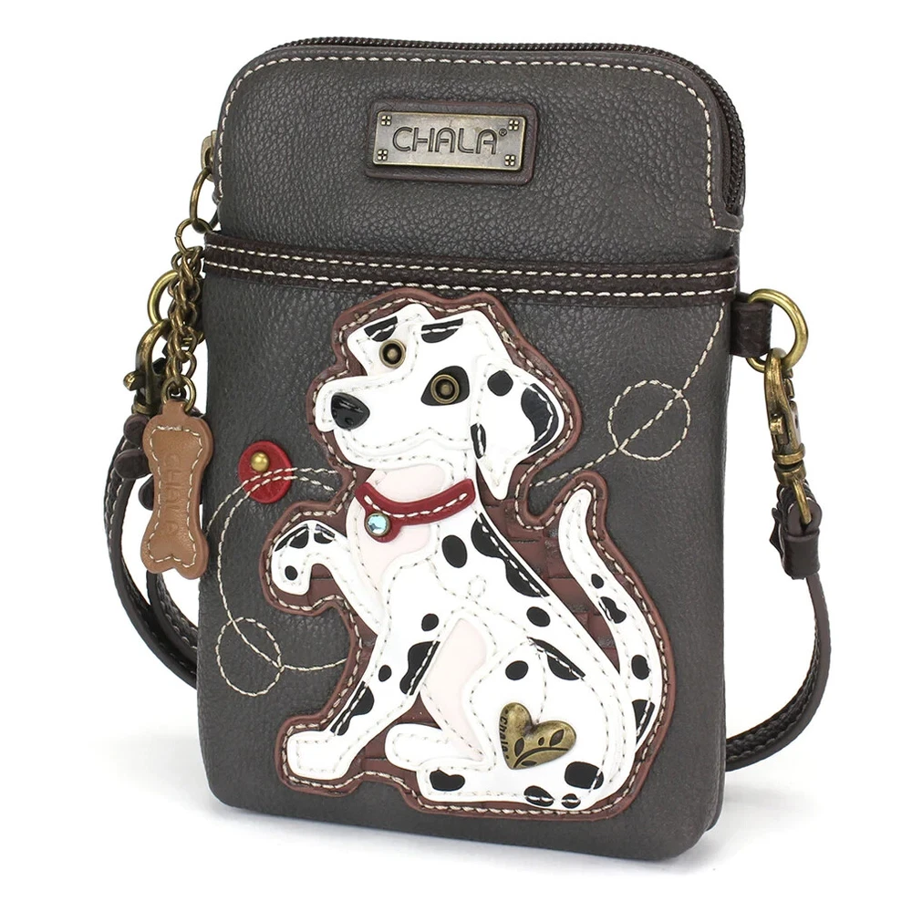 DALMATION DOG Cell phone Crossbody Bag by CHALA ~DESCRIPTION~ Front Pocket has a DALMATION Detailed stitching with metal accents BONE zipper pull Top zipper closure Inside has 3 credit card slots Extra padding to protect your cell phone ~FEATURES~ *7 x 5" x 1" *Faux Leather *Nice sturdy quality bag *inside patterned lining *designed in California *adjustable wide strap 7"-28" Check out our eBay store for more Chala Bags Thank you for looking!!! For more of what a woman loves, be sure to check out our other items in our eBay Store The Bead 'n Bag Lady!