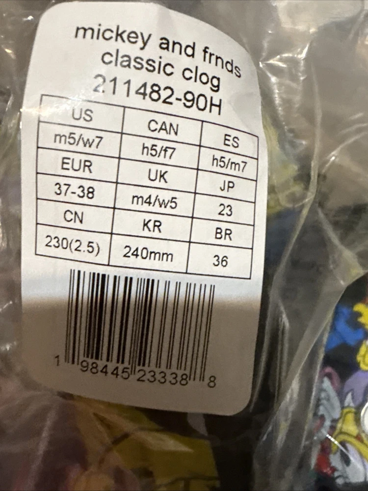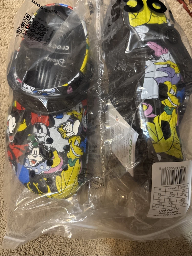 US Shoe Size:M5W7Season:Fall, Spring, SummerStyle:ClogPattern:SolidModel:Mickey And FriendsColor:MulticolorType:SlipperTheme:ClassicUpper Material:RubberDepartment:Unisex AdultsBrand:CrocsCountry of Origin:China