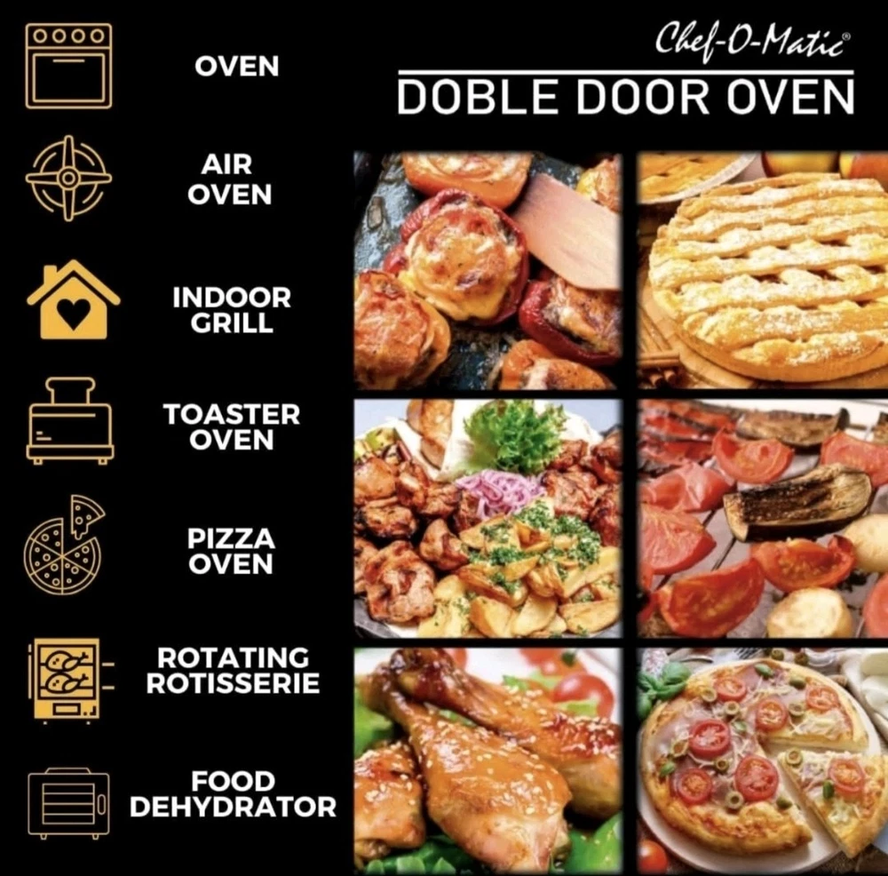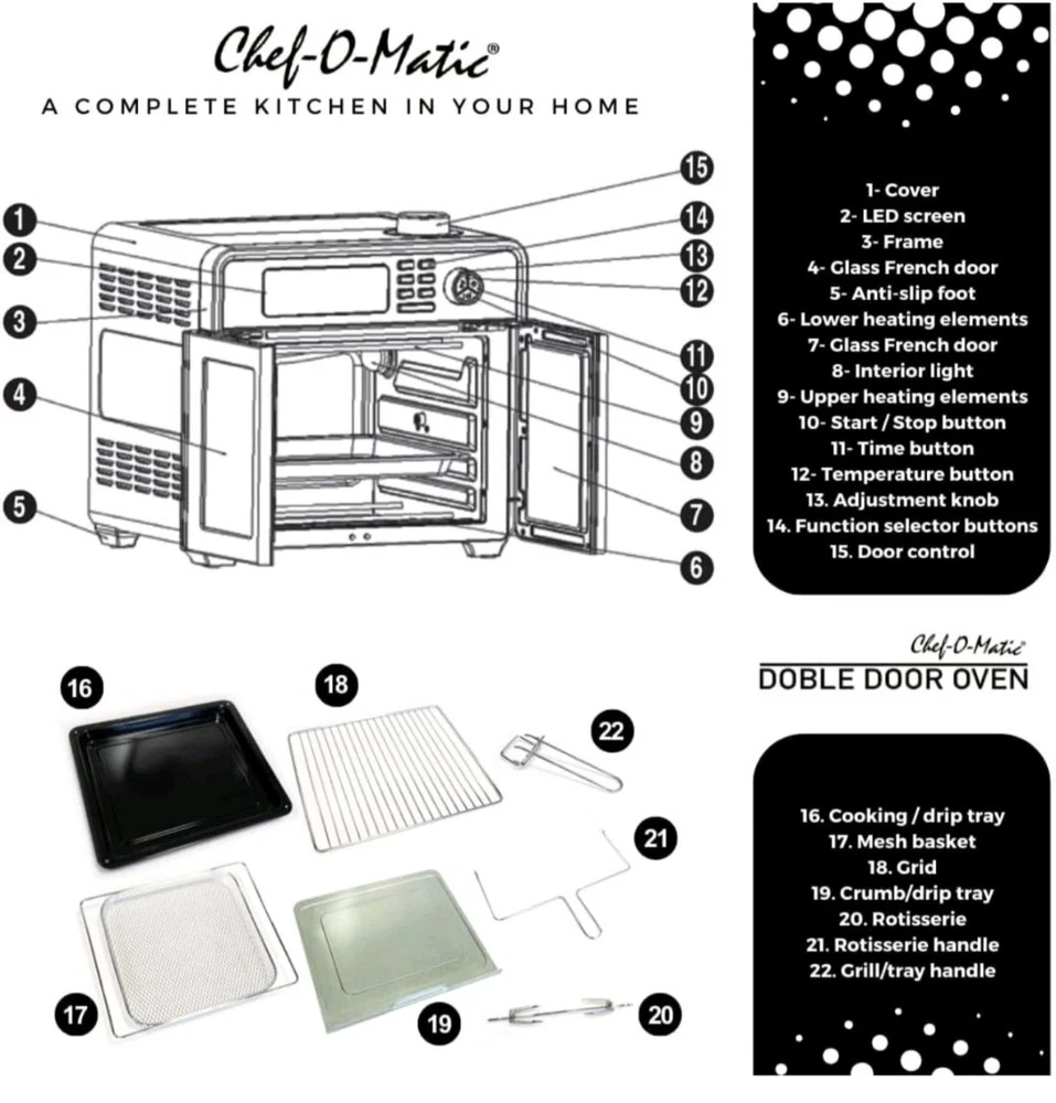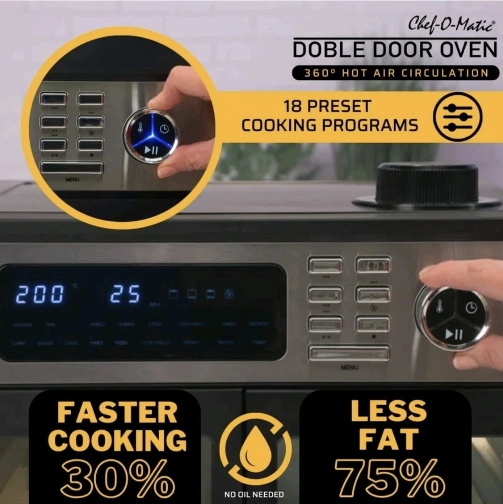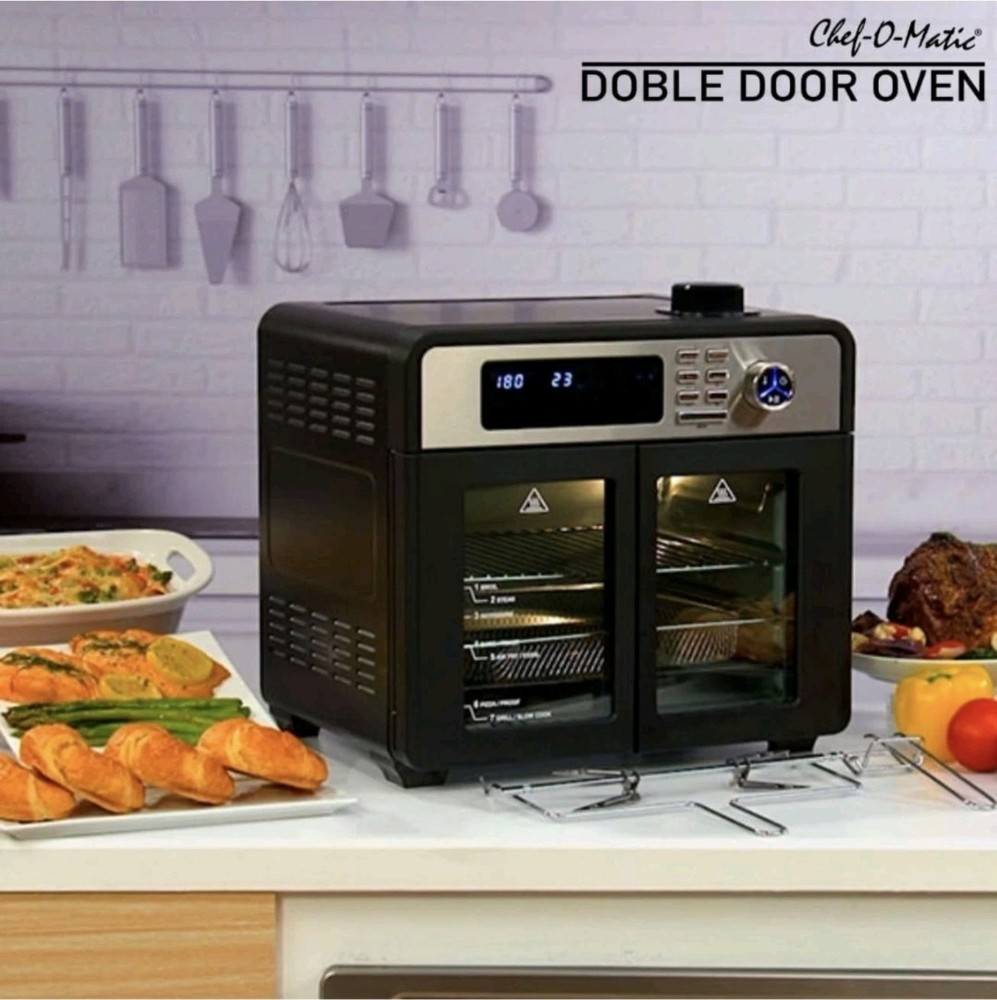 NEW Chef-O-Matic Double Door Oven 28L Air Fryer with 8 Presets & Rotisserie-USED