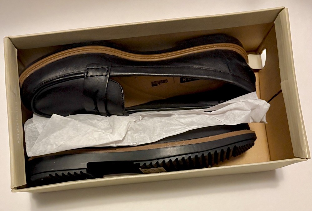 Clarks Collection Raisie Eletta Women’s Loafers Size US 7.5 Medium Black Leather Brand New in Box Brand new, never worn Clarks Collection Raisie Eletta women’s loafers. Shoes are new in box and in unworn condition. Women’s size US 7.5 Medium Color: Black Material: Leather Style: Raisie Eletta Line: Clarks Collection with Cushion Plus footbed Classic black leather loafers with a low-profile sole and cushioned insole, suitable for work, travel, or everyday wear. Please note: the original Clarks box has a retail size/price sticker on the side and shows typical label wear, all clearly visible in the photos. You will receive the exact pair of shoes and the exact box shown in the listing photos. Nothing substituted. Ships carefully packed. Feel free to ask any questions before purchasing.