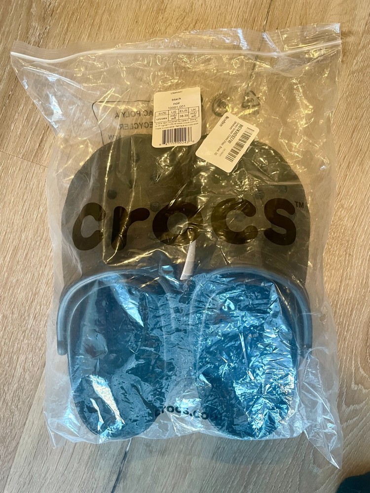 These are new Classic Crocs Unisex Adult Original Clogs in Black, with a UK shoe size of m5/w6, US shoe size of M6/W8, and EU shoe size of 39. They are designed for comfort and casual wear, featuring a clog style with a synthetic upper material. The Crocs brand offers a timeless and versatile look for both men and women.