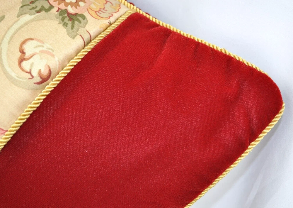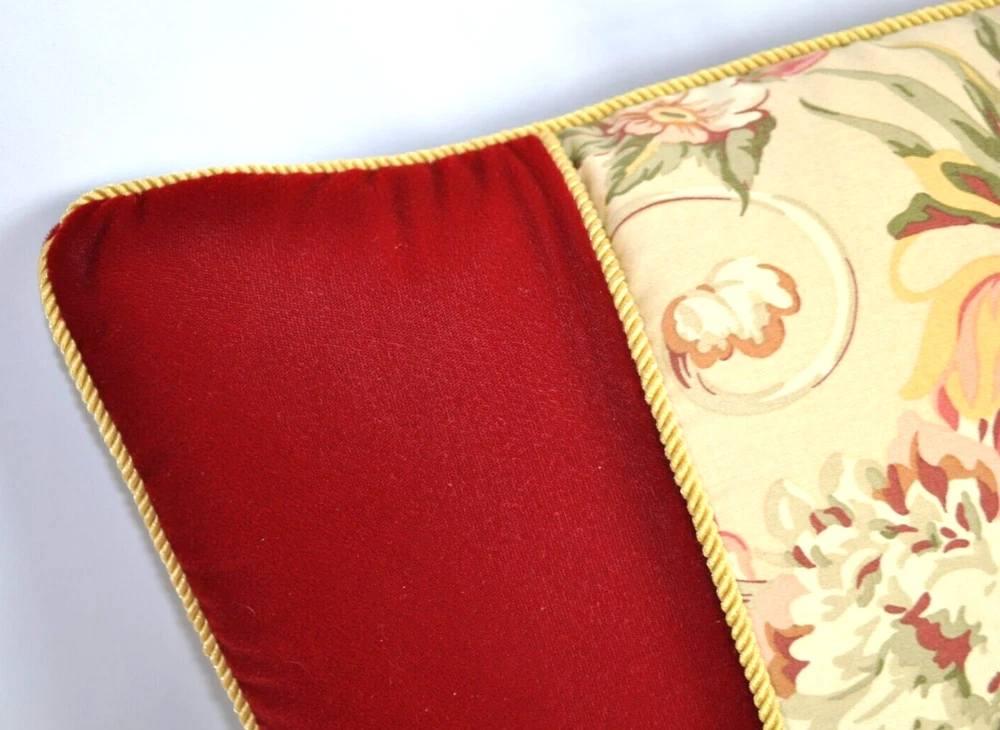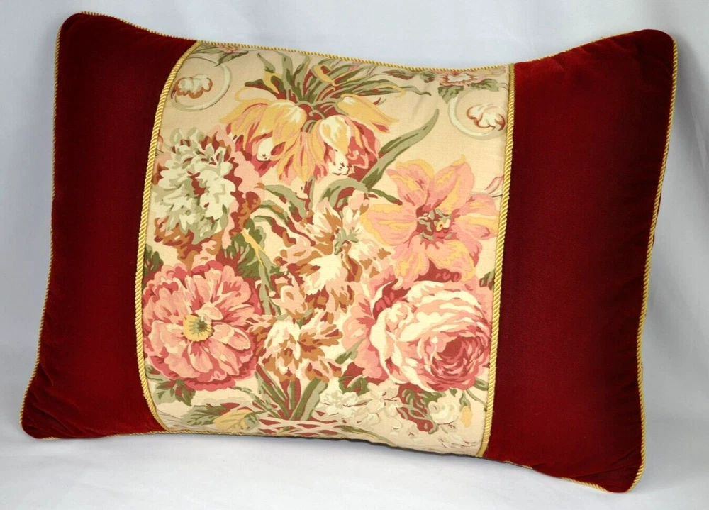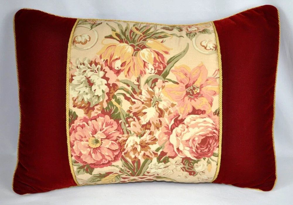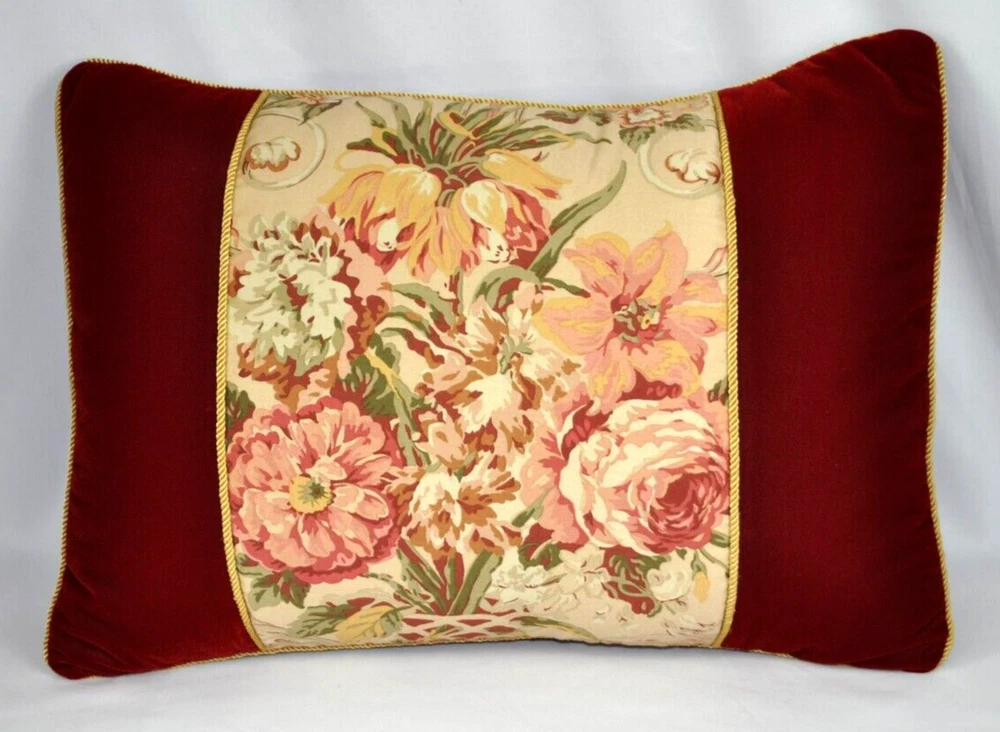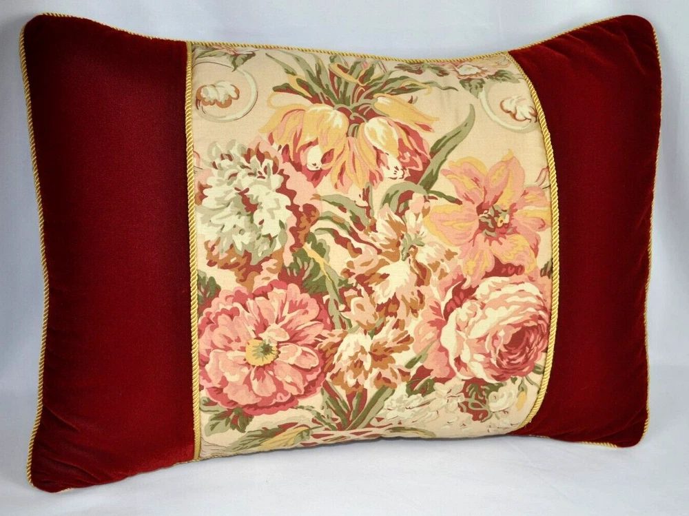 Custom sewn Accent Pillow made with Ralph Lauren Guinevere Floral & Dark Red Velvet Fabric 22" x 16" approx. Gold Cording trims, the pillow. The back has the dark red velvet fabric and has a sham closure for removal of the insert. Insert is Foam. If any extra shipping is paid, we will refund the money to your account Check our eBay Store for other items that coordinate All items from a smoke & pet free environment .