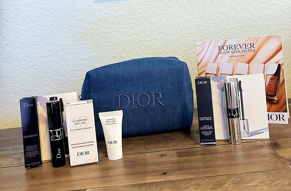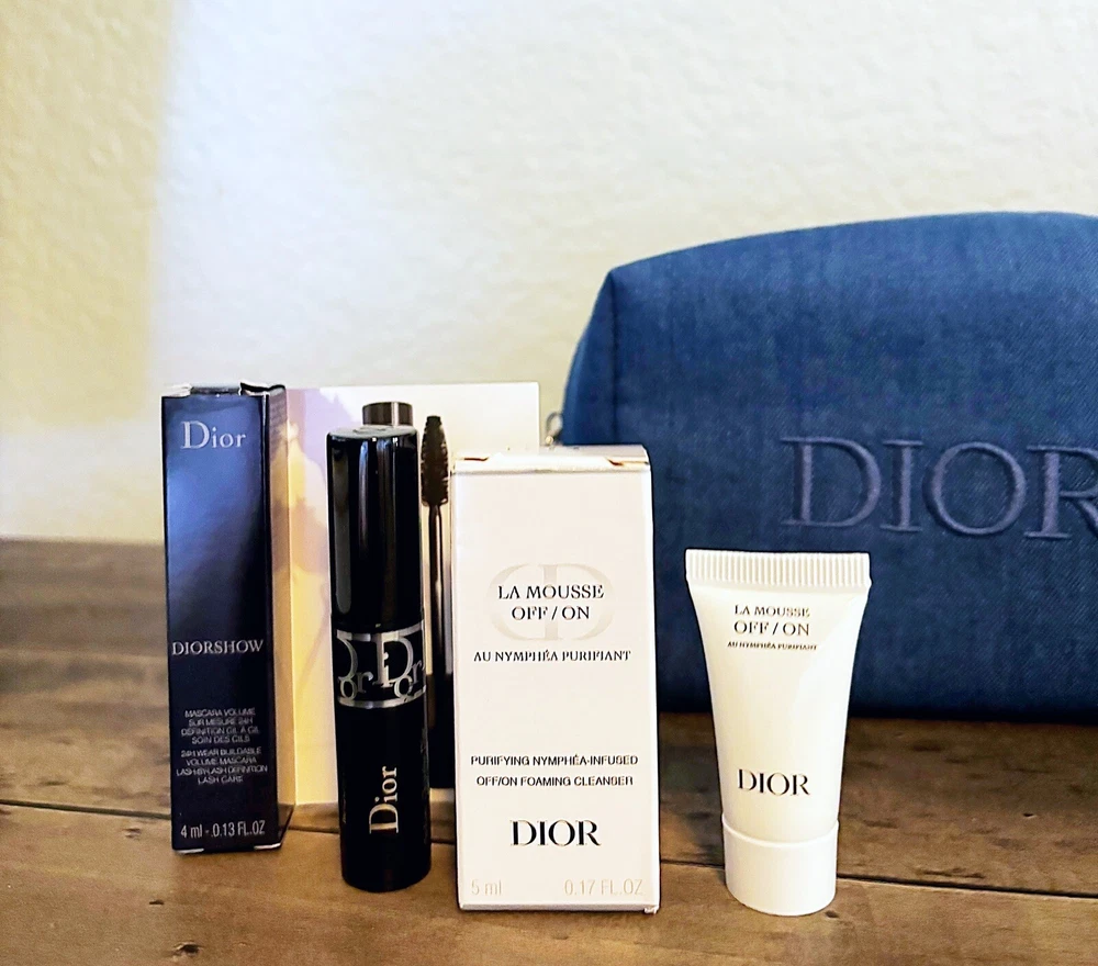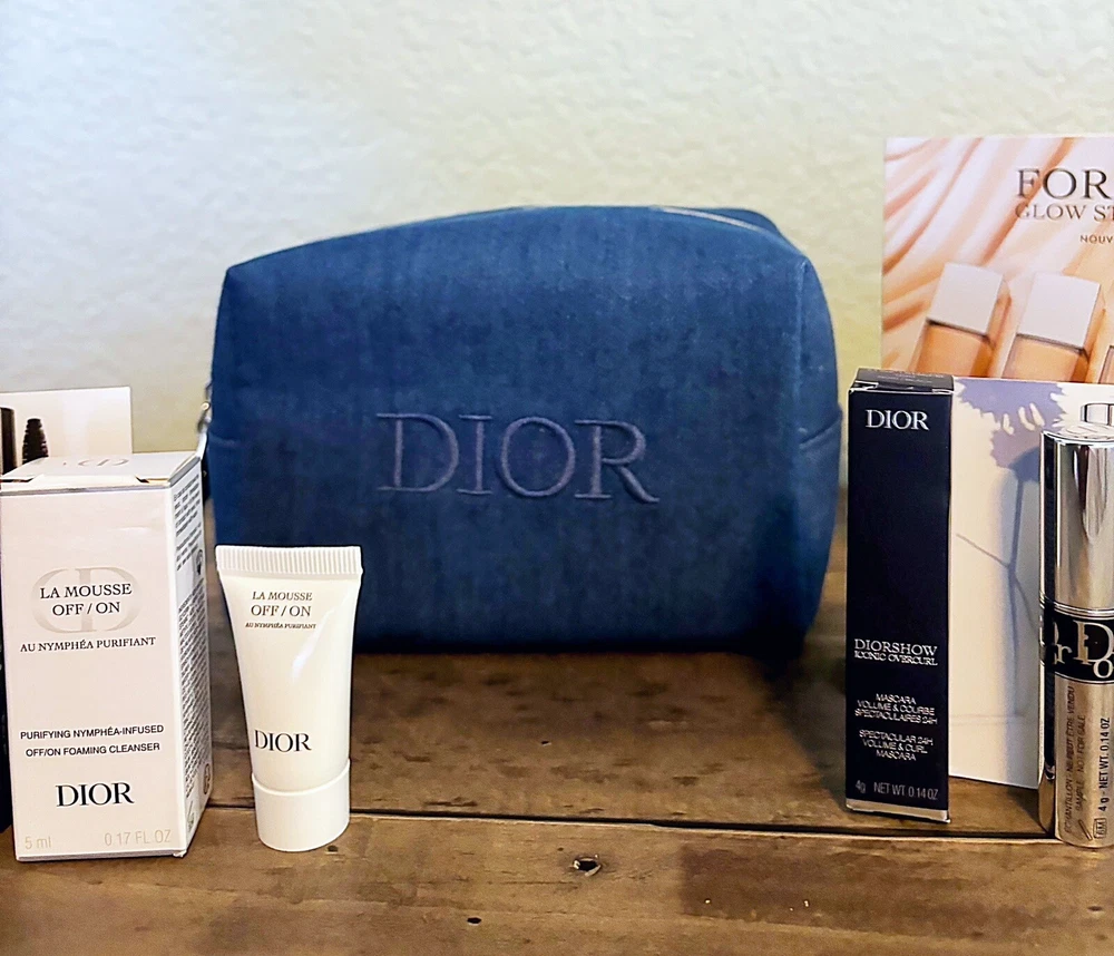 NEW! DIOR Beauty Travel Sized Box -Lot of Small Dior Products + Dior Pouch Bag
