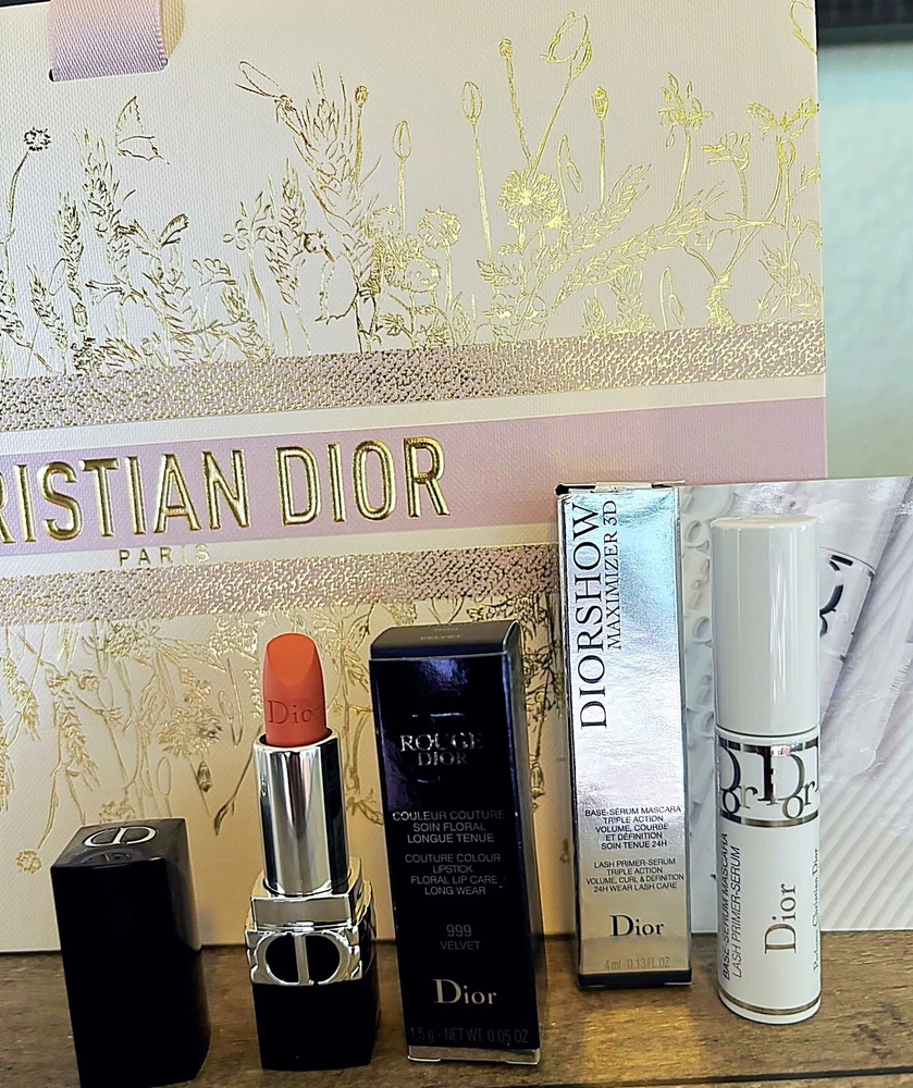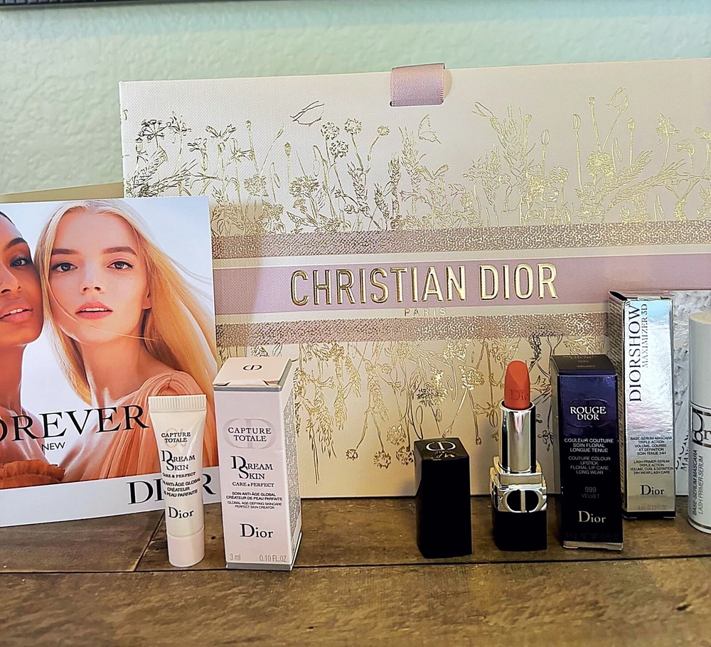 NEW! DIOR Beauty Travel Sized Box -Lot of Small Dior Products + Gift Bag. Lipstick in Matte #100 Nude Look