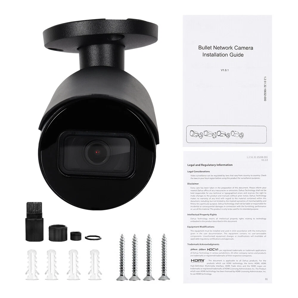 Product Description IPC-HFW2831S-S-S2 8MP Lite IR Fixed-focal Bullet Network Camera Features: 8MP, 1/2.7" CMOS image sensor, low illuminance, high image definition Outputs max. 8MP (3840 × 2160) @15 fps, and supports 2688×1520 (2688 × 1520) @25/30 fps H.265 codec, high compression rate, ultra-low bit rate Built-in IR LED, max IR distance: 30 m ROI, SMART H.264+/H.265+, flexible coding, applicable to various bandwidth and storage environments Rotation mode, WDR, 3D NR, HLC, BLC, digital watermarking, applicable to various monitoring scenes Intelligent detection: Intrusion, tripwire · Abnormality detection: Motion detection, video tampering, no SD card, SD card full, SD card error, network disconnection, IP conflict, illegal access,voltage detection Supports max. 256 GB Micro SD card 12V DC/PoE power supply IP67 protection Specifications: Camera Image Sensor 1/2.7” 8Megapixel progressive CMOS Max. Resolution 3840 (H) × 2160 (V) ROM 128 MB RAM 256 MB Scanning System Progressive Electronic Shutter Speed Auto/Manual 1/3 s–1/100,000 s Min. Illumination 0.009 Lux@F2.0 S/N Ratio > 56 dB Illumination Distance 30 m (98.43 ft) Illuminator On/Off Control Auto/Manual Illuminator Number 1 (IR LED) Pan/Tilt/Rotation Range Pan: 0°–360° Tilt: 0°–90° Rotation: 0°–360° Lens Lens Type Fixed-focal Mount Type M12 Focal Length 2.8 mm 3.6 mm Max. Aperture F2.0 F2.0 Field of View 2.8 mm: Horizontal 105° × Vertical 56° × Diagonal 125° 3.6 mm: Horizontal 87° × Vertical 47° × Diagonal 104° Iris Type Fixed Close Focus Distance 2.8 mm: 1.0 m (3.3 ft) 3.6 mm: 1.9 m (6.2 ft) DORI Distance Lens Detect Observe Recognize Identify 2.8 mm 74.7 m (245.1 ft) 29.9 m (98.1 ft) 14.9 m (48.9 ft) 7.5 m (24.6 ft) 3.6 mm 106.7 m (350.1 ft) 42.7 m (140.1 ft) 21.3 m (69.6 ft) 10.7 m (35.1 ft) Smart event IVS Tripwire; intrusion Video Video Compression H.265; H.264; H.264B; MJPEG (only supported by the sub stream) Smart Codec Smart H.265+/ Smart H.264+ Video Frame Rate Main stream: 3840 × 2160 (1 fps–15 fps) 2688 × 1520 (1 fps–25/30 fps) Sub stream: 704 × 576 (1 fps–25 fps) 704 × 480 (1 fps–30 fps) Stream Capability 2 streams Resolution 3840 × 2160 (3840 × 2160); 3072 × 2048 (3072 × 2048); 3072 ×1728 (3072 × 1728); 2592 × 1944 (2592 × 1944); 2688 × 1520 (2688 × 1520); 3M (2048 × 1536); 2304 × 1296 (2304 × 1296); 1080p (1920 × 1080); 1.3M (1280 × 960); 720p (1280 × 720); D1 (704 × 576/704 × 480); VGA (640 × 480); CIF (352 × 288/352 × 240) Bit Rate Control CBR/VBR Video Bit Rate H.264: 32 kbps–8192 kbps H.265: 12 kbps–8192 kbps Day/Night Auto(ICR)/Color/B/W BLC Yes HLC Yes WDR 120 dB White Balance Auto/natural/street lamp/outdoor/manual/regional custom Gain Control Auto/Manual Noise Reduction 3D NR Motion Detection OFF/ON (4 areas, rectangular) Region of Interest(RoI) Yes (4 areas) Smart Illumination Yes Image Rotation 0°/90°/180°/270° (Supports 90°/270° with 3840 × 2160 resolution and lower.) Mirror Yes Privacy Masking 4 areas Alarm Alarm Event No SD card; SD card full; SD card error; network disconnection; IP conflict; motion detection; video tampering; tripwire; intrusion; illegal access; voltage detection; safety exception Network Network RJ-45 (10/100 Base-T) SDK and API Yes Cyber Security Video encryption; firmware encryption; configuration encryption; Digest; WSSE; account lockout; security logs; IP/MAC filtering; generation and importing of X.509 certification; syslog; HTTPS; 802.1x; trusted boot; trusted execution; trusted upgrade Protocol IPv4; IPv6; HTTP; TCP; UDP; ARP; RTP ; RTSP; RTCP; RTMP; SMTP; FTP; SFTP; DHCP; DNS; DDNS; QoS; UPnP; NTP; Multicast; ICMP; IGMP; NFS; PPPoE; Bonjour Interoperability ONVIF(Profile S/Profile G/Profile T); CGI; P2P; Milestone; Genetec User/Host 20 Storage FTP; SFTP; Micro SD Card (support max. 256 GB); NAS Browser IE Chrome Firefox Management Software Smart PSS; DSS; DMSS Mobile Phone IOS; Android Certification Certifications CE-LVD: EN62368-1 CE-EMC: Electromagnetic Compatibility Directive 2014/30/EU FCC: 47 CFR FCC Part 15, Subpart B UL/CUL: UL60950-1 CAN/CSA C22.2 No.60950-1-07 Power Power Supply 12V DC/PoE (802.3af) Power Consumption < 5.5W Environment Operating Conditions –40°C to +60°C (–40°F to +140°F)/less than ≤ 95% RH Storage Temperature –40°C to +60°C (–40°F to +140°F) Protection Grade IP67 Structure Casing Metal Dimensions 166.2 mm × Φ70 mm (6.54" × Φ2.76") Net Weight 0.48 kg (1.1 lb) Gross Weight 0.57 kg (1.3 lb) Shipping & Handling: Warranty & Return Policy: Feedback & About Us: About Customs duty/Tax: 1. Item will be shipped out within 5 business days after the payment. Please check and make sure your address is correct before payment. (In order to make sure you can receive the items successfully, please provide your phone number as well.) 2. The items will be shipped via Post Office Airmail. It usually takes around 2 to 3 weeks to United Stated, United Kingdom, Australia, Canada and some European countries. But for other countries, it may need 4-6 weeks to deliver the parcel. It may take longer time if there is abnormal weather condition or customs control issue. Please kindly contact us for refund or assistance if the item doesn’t receive during the time. (If you want a faster service, please contact us before your bidding or purchase.) 3. Please contact us for further assistance if you don't receive the item on time. (Before opening up any "Item not received" dispute/claim, please contact us for a full refund if you don't get the package 35 days after your cleared payment.) 1. All items will be tested or checked carefully and packaged in good condition before sending out to you. Some faulty items might happen especially after overseas transportation. We offer a replacement warranty within 30 days from the date of receipt. 2. You will be responsible for the returning shipping cost, and we will ship the replacement at our cost after receiving the returned item. Please contact us fo