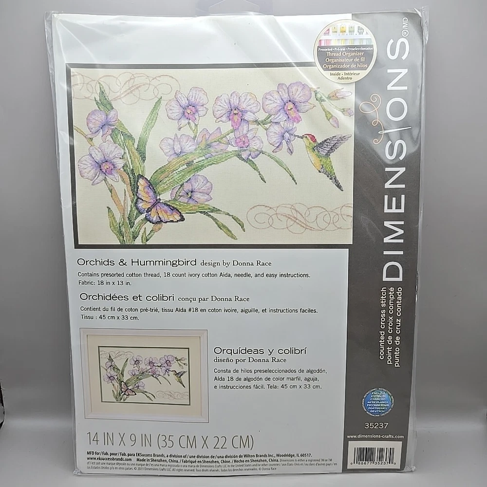 NEW Dimensions 'Orchids & Hummingbird' 14"x9" Counted Cross Stitch Kit #35237