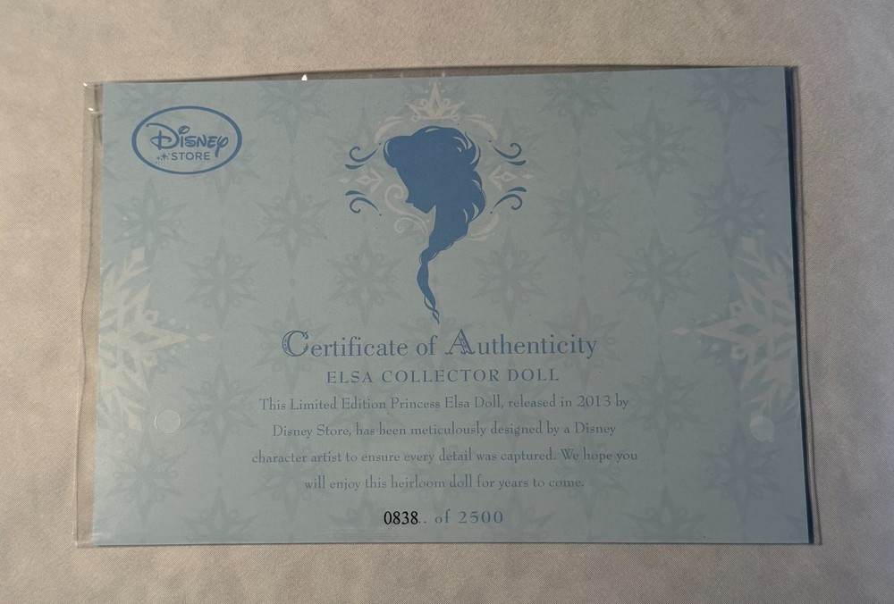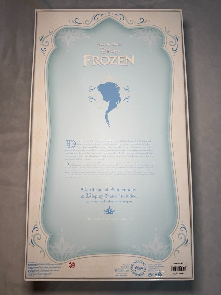The NEW Disney Store Frozen 17" Elsa Limited Edition Doll is a highly sought-after collectible item featuring the beloved character from the Disney movie Frozen. This limited edition doll is numbered 838 out of 2500, making it a rare and special addition to any Disney fan's collection. With its official Disney branding and high-quality design, this Elsa doll is sure to delight fans of the Frozen franchise and bring a touch of magic to any display.