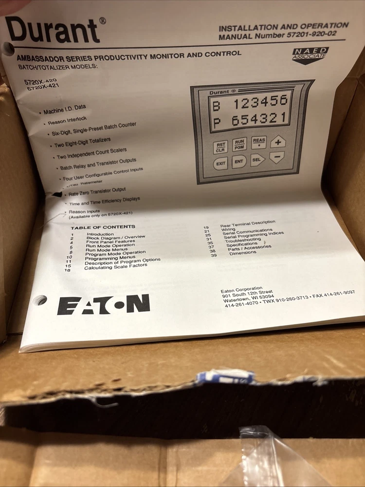 The NEW EATON DURANT 57201-421 CONTROL MONITOR 57201421 is a PLC processor designed for industrial automation and motion control systems. Manufactured by EATON DURANT, this specific model is known for its reliability and efficiency in controlling various processes within a industrial setting. With its focus on quality and performance, this control monitor is an essential component for maintaining and enhancing the functionality of industrial automation systems. International charges are the buyer’s responsibility. No international returns.