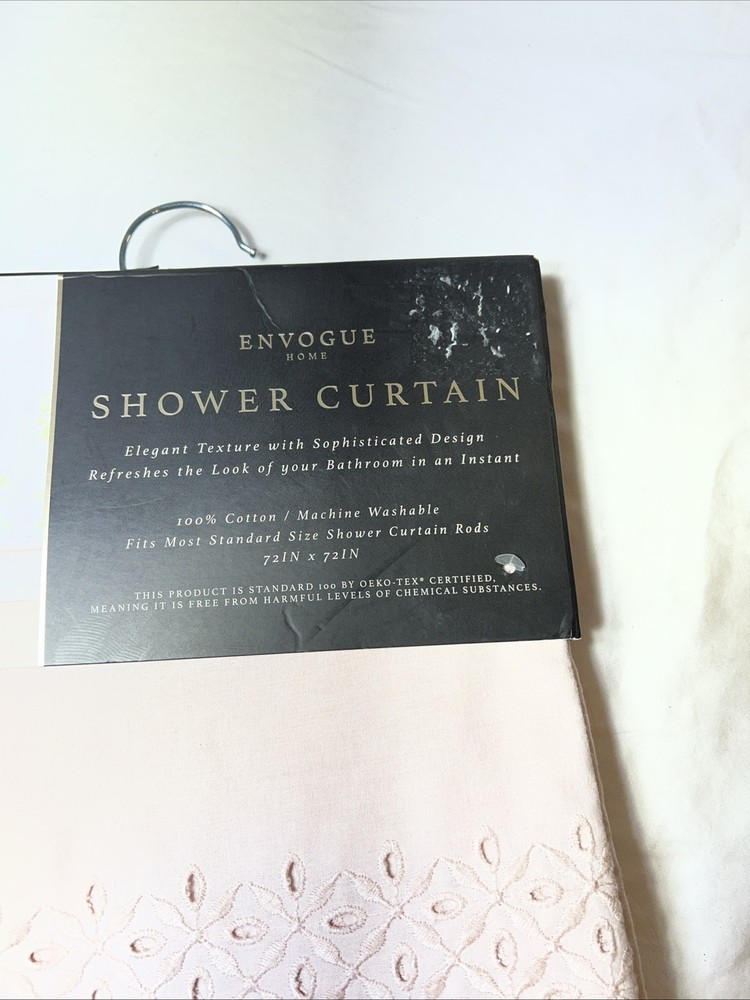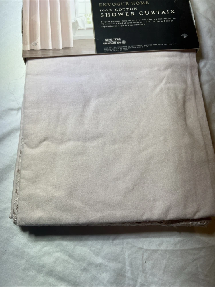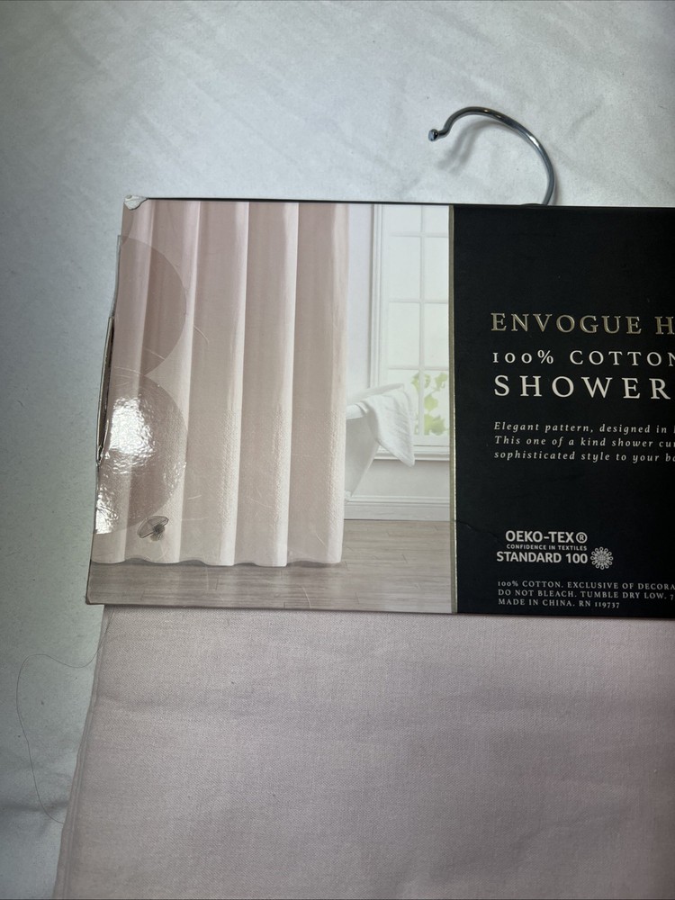 The NEW Envogue Home Shower Curtain is a stylish and practical addition to any bathroom. Made from 100% cotton fabric in a light pink color with a dotted pattern, this 72"x72" curtain is suitable for showers and bathtubs. The eyelet design adds a touch of elegance, while the machine washable feature makes it easy to keep clean and fresh. Perfect for creating a cozy and inviting atmosphere in your bathroom, this curtain from en Vogue is a must-have for your home.