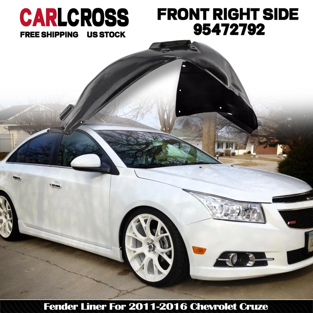 New Fender Liner For 2011-16 Chevy Cruze and Cruze Limited Front Passenger Side Description Replacement Fender Liner REPLACEMENT FENDER LINER Replacement fender liners perform just like the original to protect your engine compartment from dirt, mud, water, and other contaminants. Each Replacement fender liner is made to factory specifications, allowing you to easily restore your vehicle to its original condition. Features & Benefits: Easy to Install Designed as a direct replacement for your original fender liner. Keeps factory ducting for brakes or fluid coolers. Made to factory specifications for a hassle-free installation, guaranteed. Premium Protection Durable, high-quality construction defends against dirt, mud, water, and other contaminants. Ready to restore your vehicle to like-new condition. Benchmark Design and Manufacturing Processes Replacement brand fender liners are the result of extensive research and development, ensuring a state-of-the-art design and flawless performance. Lean manufacturing process keeps costs down and quality high. One-Year Unlimited Mileage Warranty Every Replacement fender liner comes with a one-year unlimited mileage warranty for peace of mind. Notes Location : Front, Right Side Brand New in the Box - Fit and Quality Guaranteed! Anticipated Ship Out Time Same day - 1 business day Quantity Sold Sold individually Replaces OE Number 95472792 Replaces Partslink Number GM1249226 Interchange Part Number 95472792, GM1249226 Prop 65 Warning WARNING: This product can expose you to chemicals including Chromium, Lead and lead compounds, which is known to the State of California to cause cancer and birth defects or other reproductive harm. For more information go to www.P65Warnings.ca.gov. For Online Marketplace For Online Marketplace Returns Policy 30-Day Return Policy Insulation Foam Without Insulation Foam Location Right, Front Compatible with the following vehicles: Chevrolet 2014-2015 Cruze Diesel 2015-2016 Cruze L 2016 Cruze Premier 2011-2015 Cruze (submodel: Eco, LTZ) 2011-2016 Cruze (submodel: LS, LT) 2016 Cruze Limited (submodel: Eco, L, LS, LT, LTZ) On Jan 24, 2025 at 08:45:56 PST, seller added the following information: