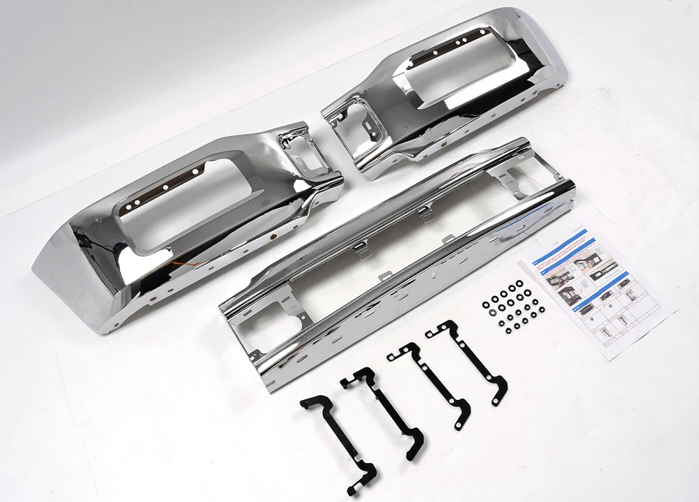 Brand: Unbranded Features: Durable, Easy Installation, No Drilling Required, Scratch-Resistant Items Included: 1 set front bumper face bar, Installation Manual Note: Segmented Bumper, not Integrated, pls check pics before paid Placement on Vehicle: Front Type: Bumper Face Bar Color: Chrome Material: steel Bumper Cut-Outs: Fog Light Cut-out Universal Fitment: No Finish: Chrome