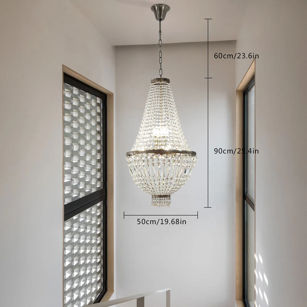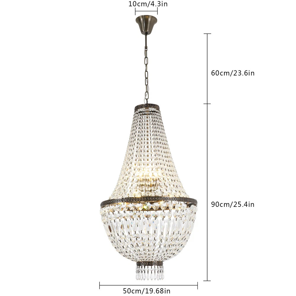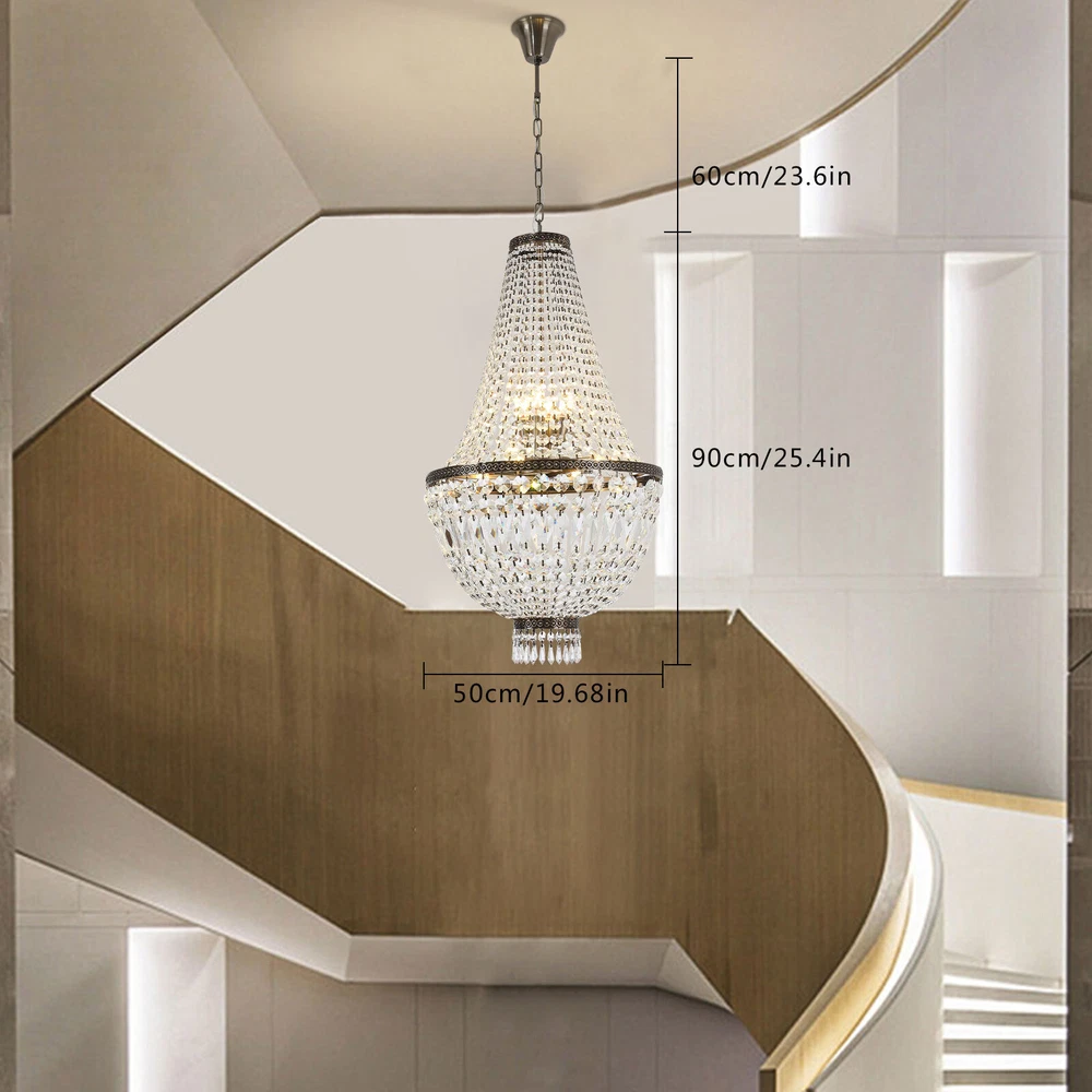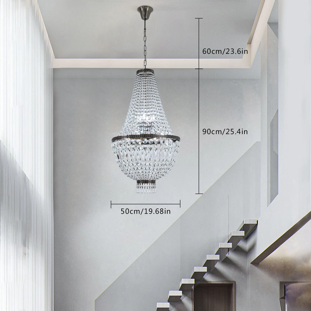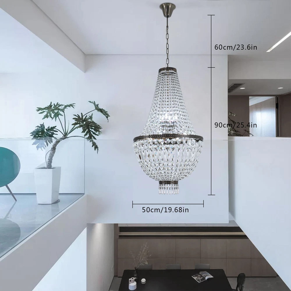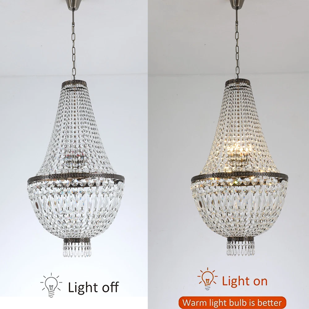 NEW French Empire Chandelier Large Crystal Pendant Light Modern Hanging Lamp E12 NEW French Empire Chandelier Large Crystal Pendant Light Modern Hanging Lamp E12 About this item: High Quality: Solidly crafted with superior quality stainless steel, First-Class crystal , processed in excellent technology, this contemporary chandelier is safety, durable, anti-corrosion no-fading。 Luxury Design: High-End luxurious beautiful design, sparkles from every Angle, it is a gorgeous crystal ceiling light fixture which is far more stunning than the picture. Dimensions of crystal chandelier: 19.68" Diameter x25.4" Height. Canopy: 4.3" Diameter x 1.36" Height. Adjustable chain:23" Length. Hanging crystal chandelier: structured with crystal finishes, this elegant chandelier adds color to any room。 Number of bulbs: This fixture can accommodate up to 9x40-watt incandescent E12 bulbs with maximum candle holder base (not included) Note: This light needs to be assembled. Product description: This chandelier is a feature of the large chandelier that decorates the best castles and palaces in Europe. It reflects the first-class and elegant times and will definitely create a special atmosphere in each home. Specification: Size: H19.68 "xW 25.4" Chain: 23 inches Material: metal, crystal 【8xE12 Bulbs】 It works well with any E12 bulb base, Maximum power: 40W (each bulb), LED or CFL or incandescent,Edison bulbs, (Bulbs NOT Included,each bulb is recommended). Voltage: 110-120V,It can be dimmable when you used with a dimmable bulb and compatible dimmer switch. Note: This light needs to be assembled. If you have any installation issues, please feel free to contact us. Package Content: 1 x Crystal Chandelier 1 x Instruction manual 1 x Hardware bag Installation Instruction: ①For your safety, Please turn off the power before installation ② Please check parts against the packing list to see if the accessories are available. ③We provide install instructions for you. please referred to install manual or have a professional electrician. If need any help, please contact us. Payment Delivery details Terms of sales About us Contact us Payment We accept ebay payment 。 Fees such as import duties, taxes are not included in the item price or shipping costs. These charges are the buyer's responsibility. Delivery details Shipping: 2-9 working days to: USA Terms of sales We maintain high standards of excellence and strive for hundred percent customer satisfaction. Feedback is very important to us. We hope that you contact us immediately before you give neutral or negative feedback, so that we can address your concerns. It is impossible to address issues if we do not know about them! About us Your satis faction is our ultimate goal. We work hard to earn your trust and future business. Our certified technicians have tested each item before shipping. The unit comes with 1 year limited warranty on all manufacturing defects. a) If you receive a defective item, you may return it or ask for a discount. Please contact us within 14 days after you receive the package. b) What you returned must be intact and in its original packaging as re? u. Customer is responsible for shipping costs of the returned item. c) We will cover the cost of shipping back t with the shipping rate indicated in the registration page. We will send you a new unit or refund the full payment you paid. Thank you. Contact us Business Hour Business Hour: Monday To Friday: 8:30 AM to 5:00 PM (Beijing China time) Due to time zones, our reply to your questions may not be immediately. But within above working time, we will reply your email within 24 hours. If it's non-workdays, please kindly be patient and wait till Monday. Please contact us with ebay message. Please feel free to contact us if you have any questions. Monday To Friday: 8:30 AM to 5:00 PM (Beijing China time) Due to time zones, our reply to your questions may not be immediately. But within above working time, we will reply your email within 24 hours. If it's non-workdays, please kindly be patient and wait till Monday. Please contact us with ebay message. Please feel free to contact us if you have any questions. Warranty 5 years Manufacturer Warranty 4 Years Feature 1 Creative Design,Durable Material,Beautiful Appearance * Feature * Easy installation,Convenient Use,Easy Operation Year of manufacture 2023 Features Durable Surface Finish Made of high quality material Brand Unbranded Type Chandelier Size H19.68 "xW 25.4" Chain 23 inches Material metal, crystal Style Modern Room Attic, Bar, Dining Room, Entryway, Kitchen, Living Room, Utility/Laundry Room Power Source Corded Installation Area Indoor Color Green Patina