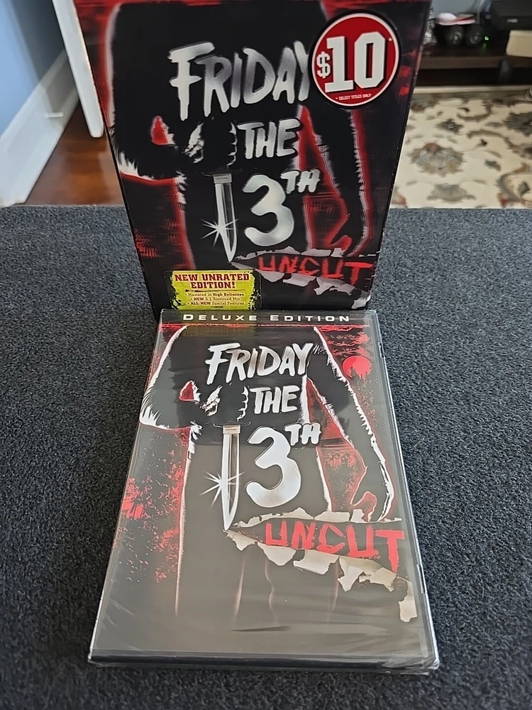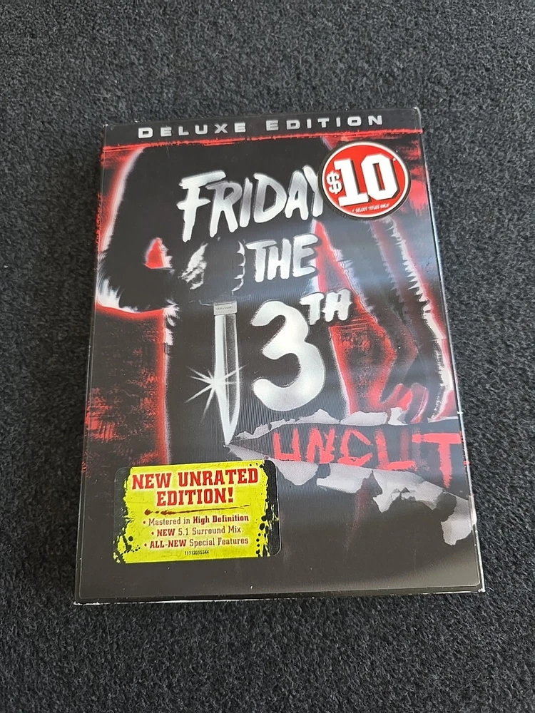 BRAND NEW SEALED WITH OUTER SLEEVE INTACT Experience the terror of the iconic horror movie "Friday the 13th - Part 1" on DVD. This deluxe edition features the original, uncut version of the film from 2009, along with special features such as commentary by the director and cast members. The DVD is formatted for Region 1 (US, Canada...) and is rated R for intense violence and gore. Follow the story of a group of friends who fall victim to a killer on their vacation to Lake Wissota. Starring Adrienne King, Betsy Palmer, and Kevin Bacon, this classic horror movie is a must-have for fans of the genre. Get your hands on this DVD and relive the suspense and terror of "Friday the 13th - Part 1".