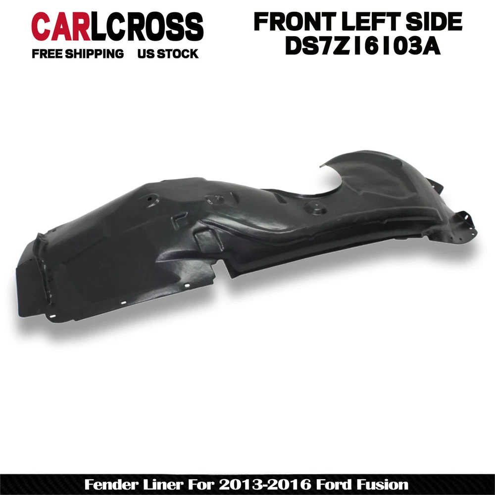 Fender Liner For 2013-2016 Ford Fusion Front Driver Side DS7Z16103A FO1248159 Description Replacement Fender Liner REPLACEMENT FENDER LINER Replacement fender liners perform just like the original to protect your engine compartment from dirt, mud, water, and other contaminants. Each Replacement fender liner is made to factory specifications, allowing you to easily restore your vehicle to its original condition. Features & Benefits: Easy to Install Designed as a direct replacement for your original fender liner. Keeps factory ducting for brakes or fluid coolers. Made to factory specifications for a hassle-free installation, guaranteed. Premium Protection Durable, high-quality construction defends against dirt, mud, water, and other contaminants. Ready to restore your vehicle to like-new condition. Benchmark Design and Manufacturing Processes Replacement brand fender liners are the result of extensive research and development, ensuring a state-of-the-art design and flawless performance. Lean manufacturing process keeps costs down and quality high. One-Year Unlimited Mileage Warranty Every Replacement fender liner comes with a one-year unlimited mileage warranty for peace of mind. Notes Location : Front, Left Brand New in the Box - Fit and Quality Guaranteed! Anticipated Ship Out Time Same day - 1 business day Quantity Sold Sold individually Replaces OE Number DS7Z16103A Replaces Partslink Number FO1248159 Interchange Part Number DS7Z16103A, FO1248159 Prop 65 Warning WARNING: This product can expose you to chemicals including Chromium, Lead and lead compounds, which is known to the State of California to cause cancer and birth defects or other reproductive harm. For more information go to www.P65Warnings.ca.gov. For Online Marketplace For Online Marketplace Returns Policy 30-Day Return Policy Insulation Foam With Insulation Foam Location Left, Front Compatible with the following vehicles: Ford 2014-2016 Fusion S Hybrid 2013-2016 Fusion (submodel: Energi SE, Energi Titanium, S, SE, SE Hybrid, Titanium, Titanium Hybrid) On Jan 24, 2025 at 11:56:57 PST, seller added the following information: