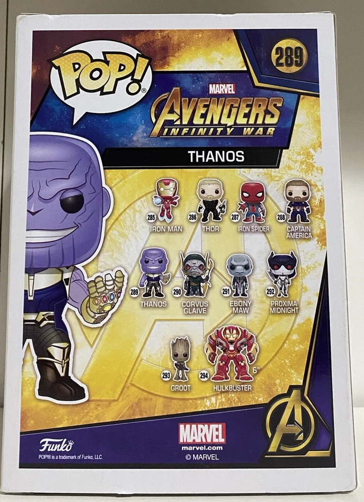 Elevate your Marvel collection with the Funko Pop! Thanos #289 figure from the Avengers: Infinity War Series 1. This vinyl masterpiece captures the formidable Marvel titan, Thanos, holding his iconic Infinity Gauntlet, as seen in the gripping movie. It's a must-have for fans of the franchise and collectors alike, providing a stunning visual likeness to the cinematic villain. Proudly display this collectible from the Pop! Vinyl product line, which comes in its original packaging, having been opened to ensure its authenticity. The figure boasts the box number 289 and is a non-modified item, staying true to its Marvel Avengers character family roots. Embrace the might of Thanos and the legacy of the Avengers with this detailed and revered collectible. 😊😊 PLEASE SEE OTHER ITEMS, I M LISTING THIS FROM A MEGA NERF LOT - I WILL BE LISTING NERF PISTOLS, RIFLES, ACCESSORIES, ETC - NERF RIVALS WHITE/RED, ACCUSTRIKE, TERASCOUT, RAMPAGE, ZOMBIE ETC m, VIDEO GAMES (NINTENDO GB, DS,WII, PSP) - HOT-WHEELS 100S, TECH DECKS, MATCH BOX, MUSCLE MACHINES, FUNKO POPS, TOYS, PLUSH, BOARD GAMES, DVDS, CDS, BLURAYS PUZZLES, LEGOS, ETC FREE SHIPPING ⭐️⭐️⭐️⭐️ PROCESSING TIME: 3 DAYS I HAVE ALMOST 100 FUNKO POPS FROM VARIOUS SETS TO INCLUDE: MASTERS OF THE UNIVERSE, STRANGER THINGS, MARVEL, DISNEY, JUMBO SIZE ETC - PLEASE SEE STORE - FAST FREE SHIPPING - I WOULD BE WILLING TO COMBINE SHIPPING FOR MULTIPLE ORDERS - I HAVE MANY ITEMS PER SET - ITEM: - MARVEL AVENGERS: INFINITY WAR - - DATE: NAME : THANOS - # : 289 - SHORT CARD? - DESCRIPTION: - NEW - SHOWS MILD SIGNS OF SHELF WEAR AS EXPECTED - RETRO/ VINTAGE - PREOWNED ITEMS MAY SHOW SIGNS OF SHELF WEAR DUE TO THE NATURE OF AGE. THANKS MUCH FOR YOUR SUPPORT MY DEAR CUSTOMER ⭐️🙏
