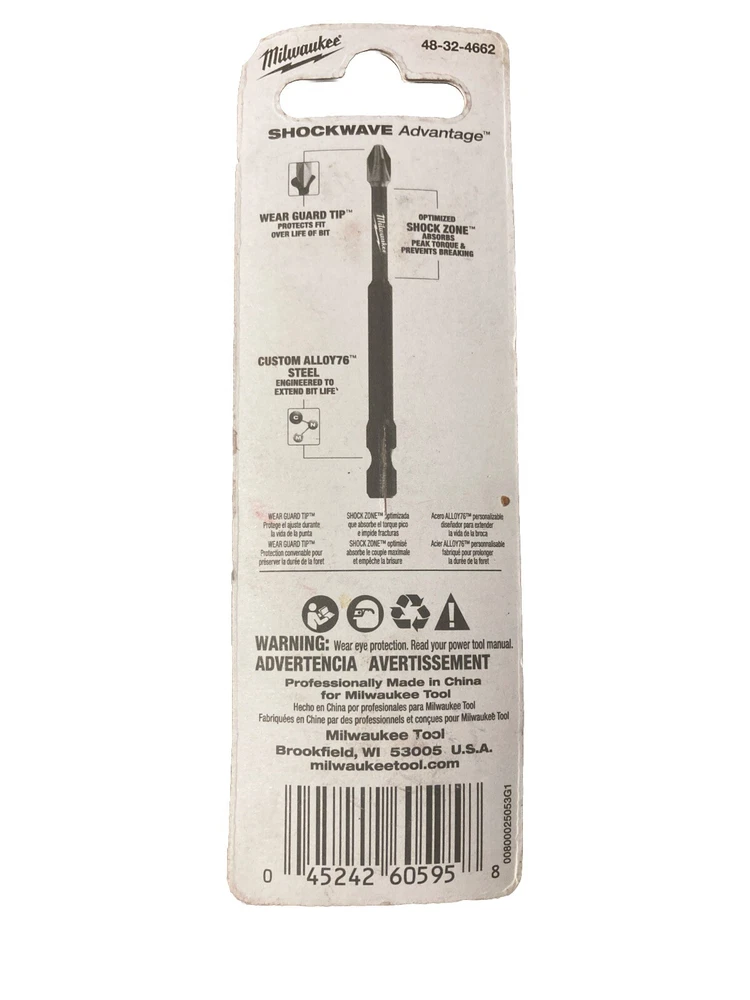 The NEW GENUINE MILWAUKEE Shockwave Impact Duty 3-1/2” #PH2 Phillips Bit 48-32-4662 is a set of two Phillips driver bits designed for use with a drill. The bits are made of steel with a 1/4 inch belt width and a silver color. They are part of Milwaukee's Shockwave Impact Duty line, known for its durability and performance. These bits are ideal for various drilling tasks and provide reliable support for driving screws and fasteners. Brand new - never opened Minor cosmetic scuff marks on packaging overall in excellent condition (see pics) ***FAST SHIPPING*** SAME DAY / NEXT DAY