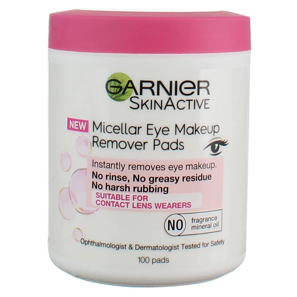 Oil-free Micellar eye makeup remover pads Removes eye makeup and soothes skin with no greasy residue These Garnier makeup remover pads are soft, pre-moistened and won't dry out Ultra Gentle Formula that works without harsh rubbing Ophthalmologist and Dermatologist tested NOTE: A brand-new, unused, unopened, undamaged item in its original packaging